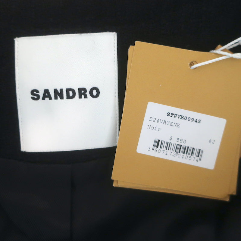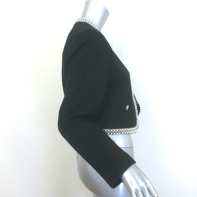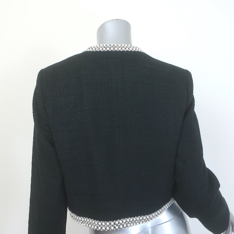 Sandro Vayene Pearl-Beaded Tweed Jacket Black Cotton-Blend Size 42 NEW