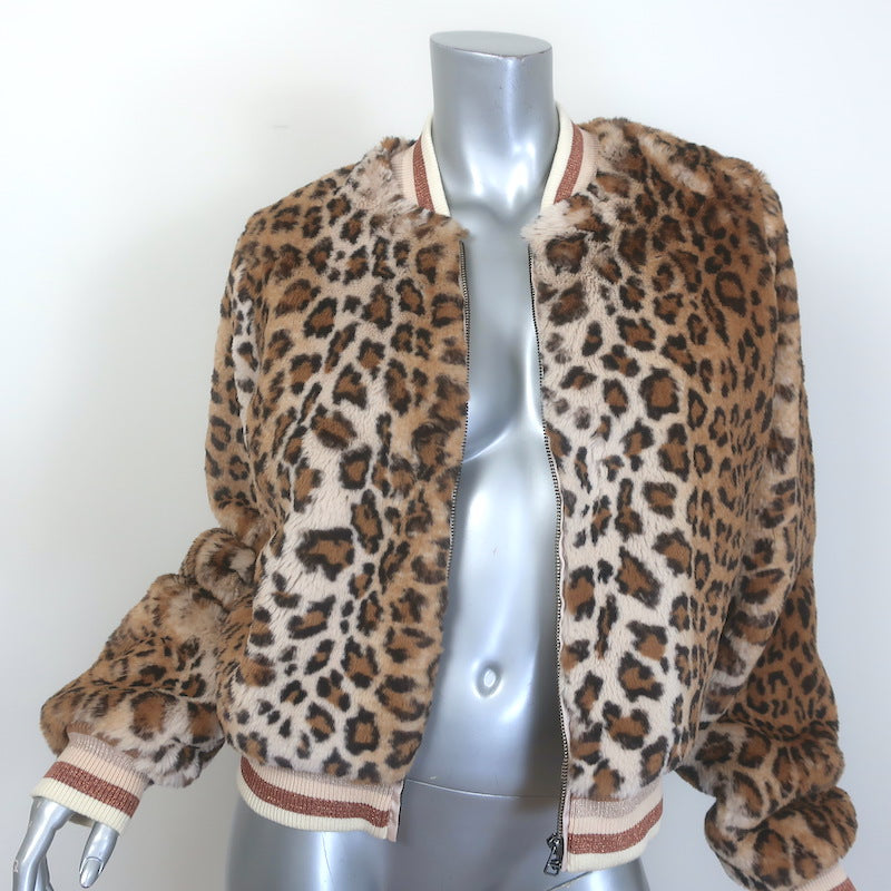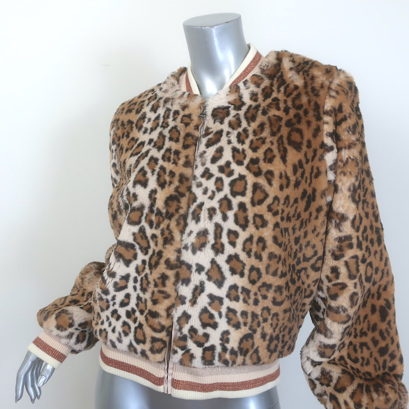 Spiritual Gangster Leopard Print Faux Fur Bomber Jacket Size Small