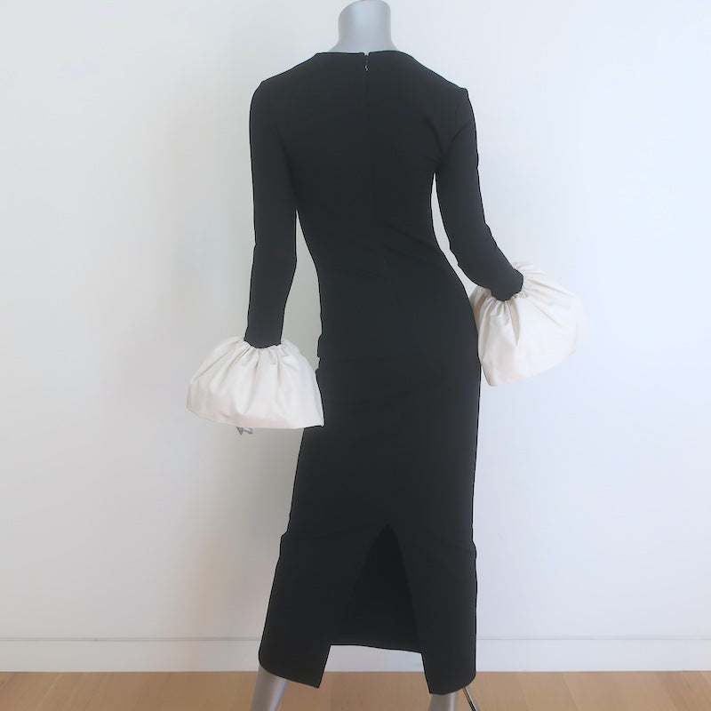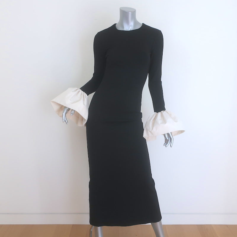 STAUD Hawthorne Bell Sleeve Maxi Dress Black Stretch Jersey Size Extra Small