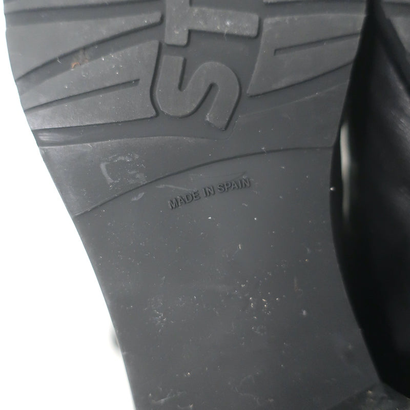 Pre-loved. Good condition. Wear on corners of toes. Tiny brown speck on exterior side of right shoe. Gray smudges throughout rubber. Does...
