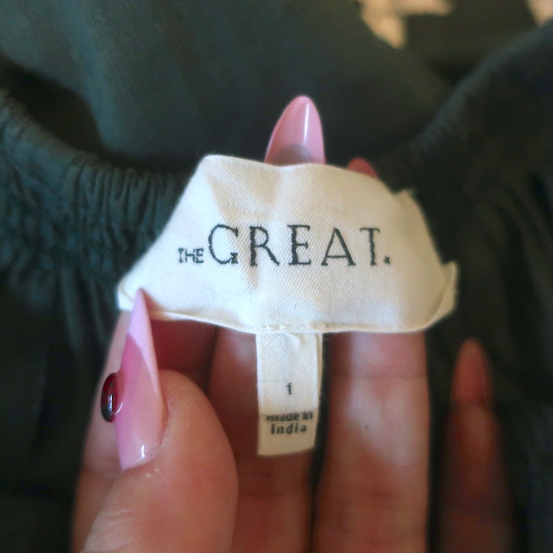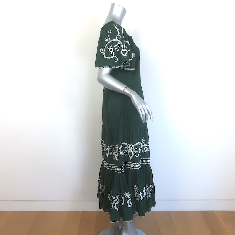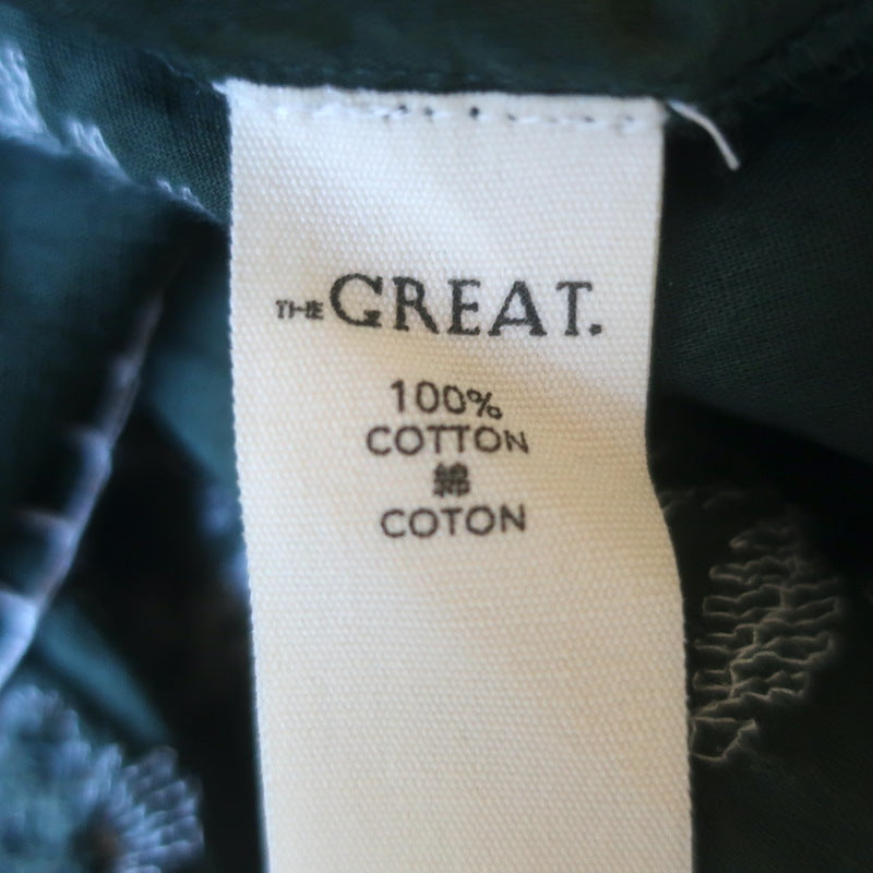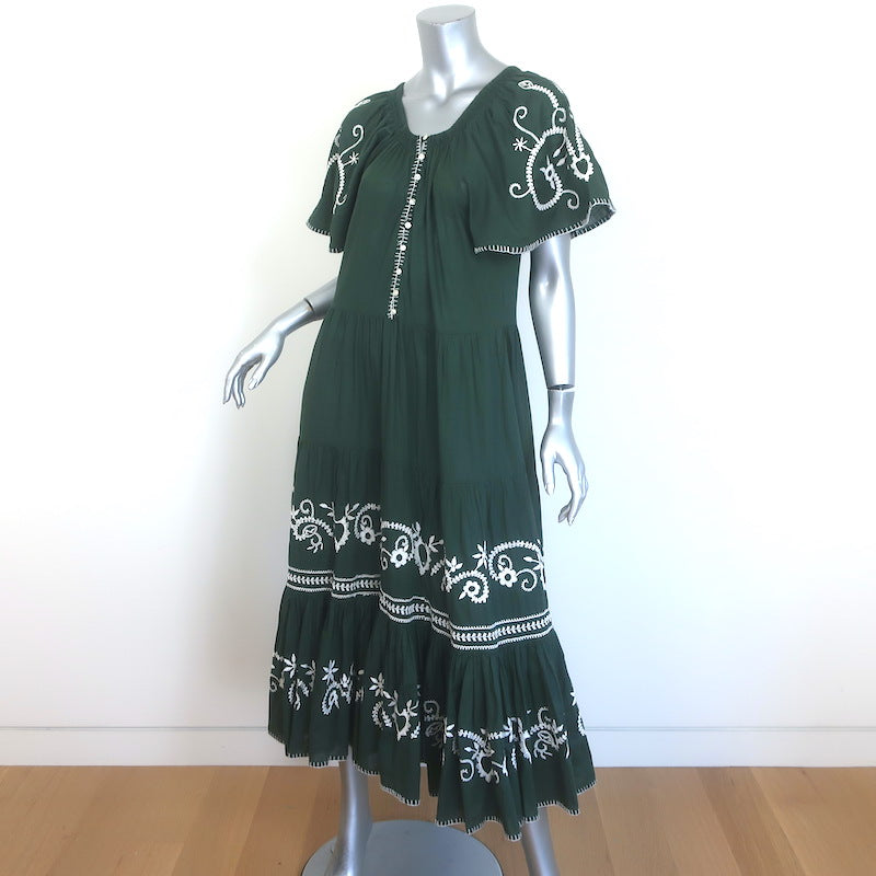 THE GREAT The Iris Embroidered Midi Dress Dark Forest Green Cotton Size 1