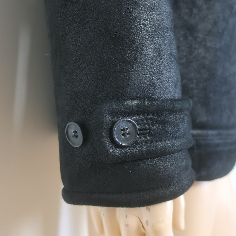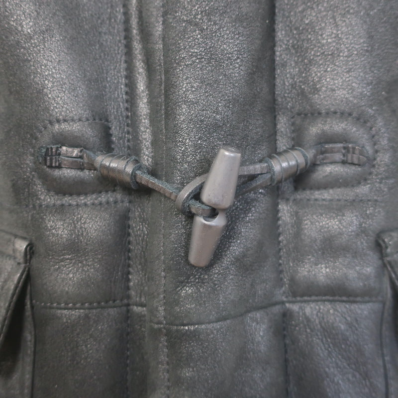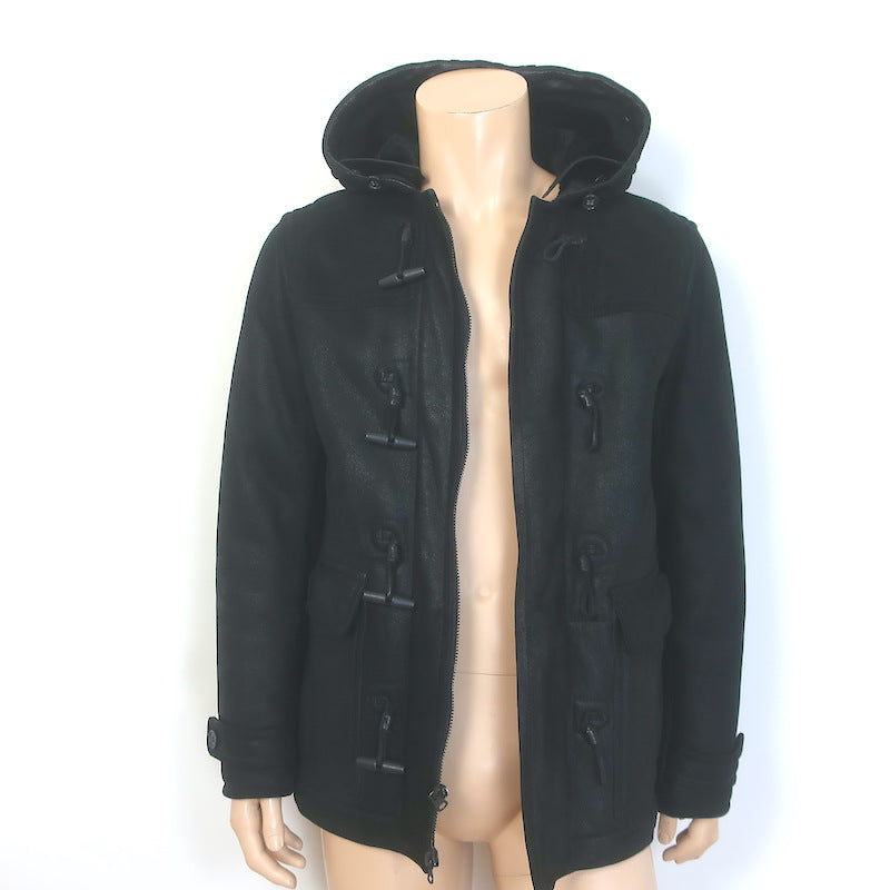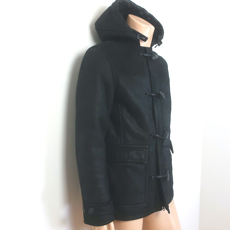 Theory Shearling-Lined Hooded Duffle Coat Black Sheepskin Size Medium