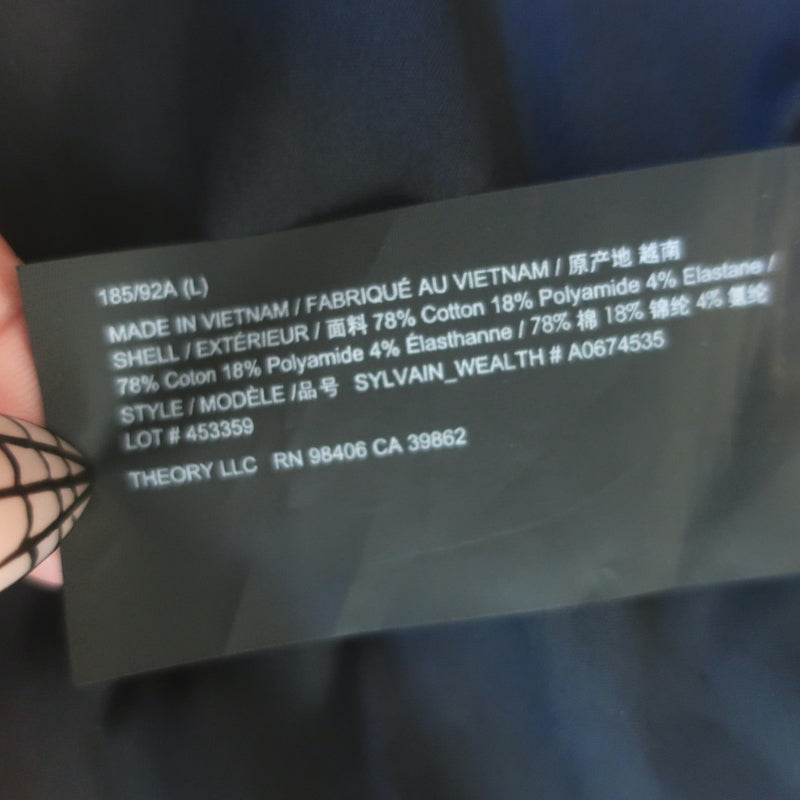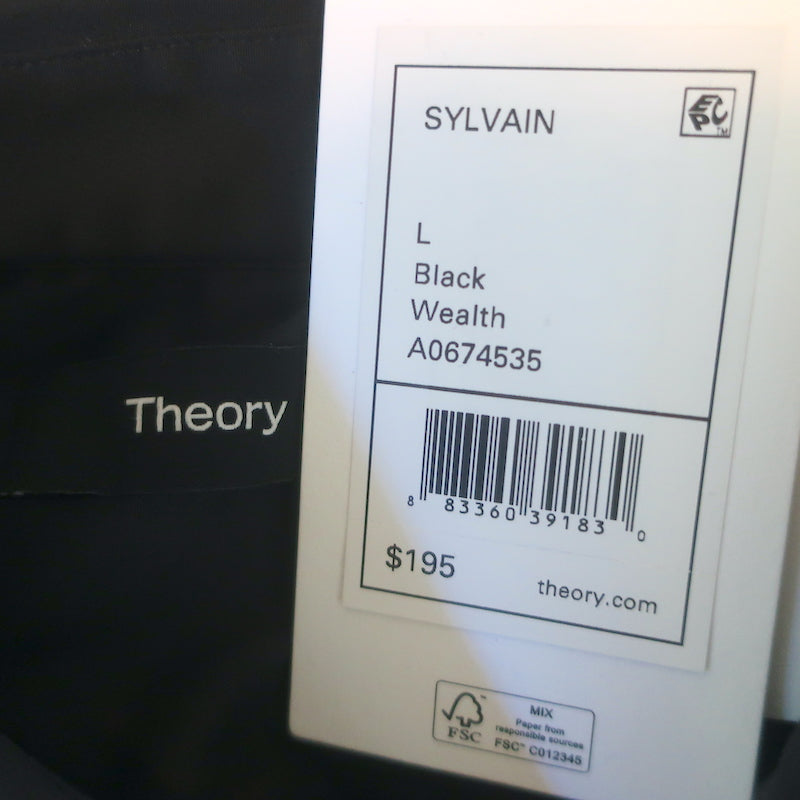 Theory Sylvain Shirt Black Stretch Cotton Size Large NEW