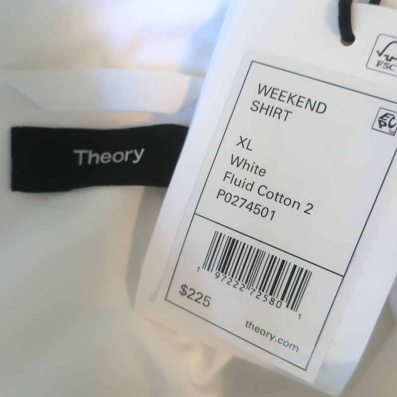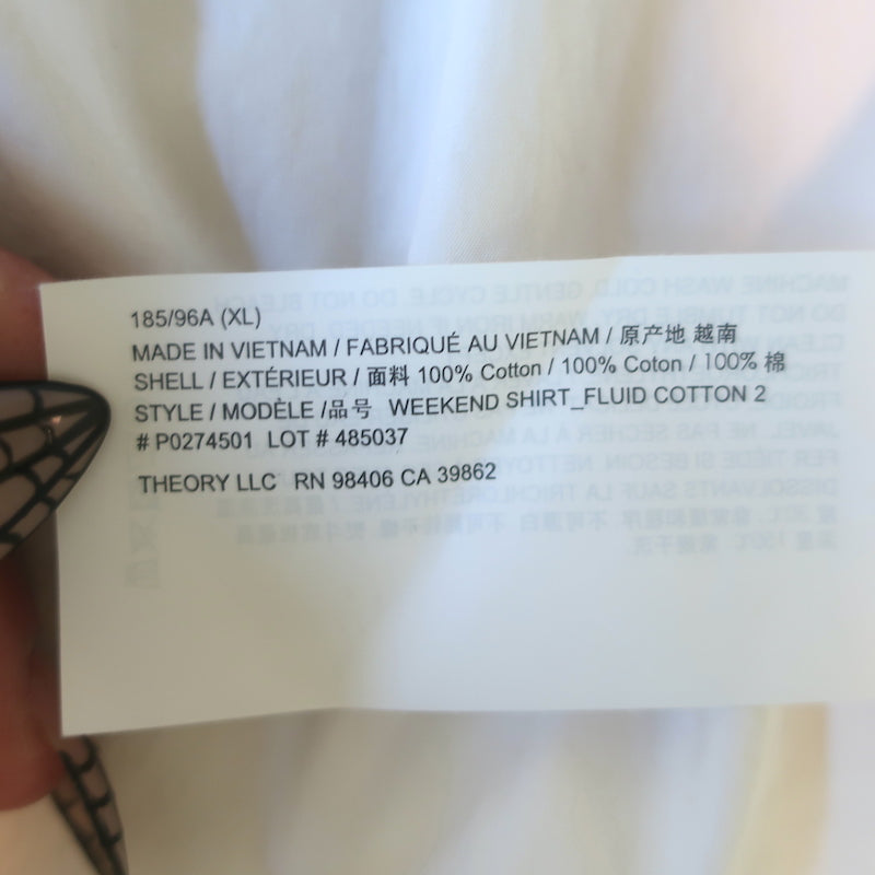 Theory Weekend Shirt White Fluid Cotton Size Extra Large NEW