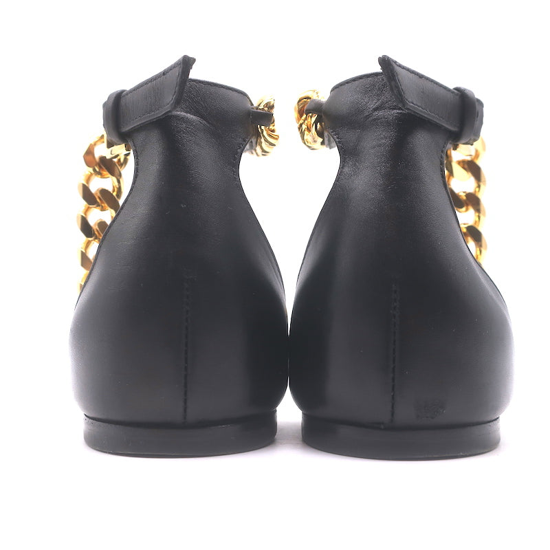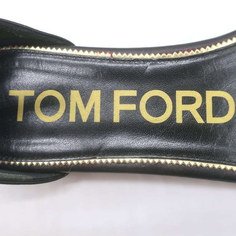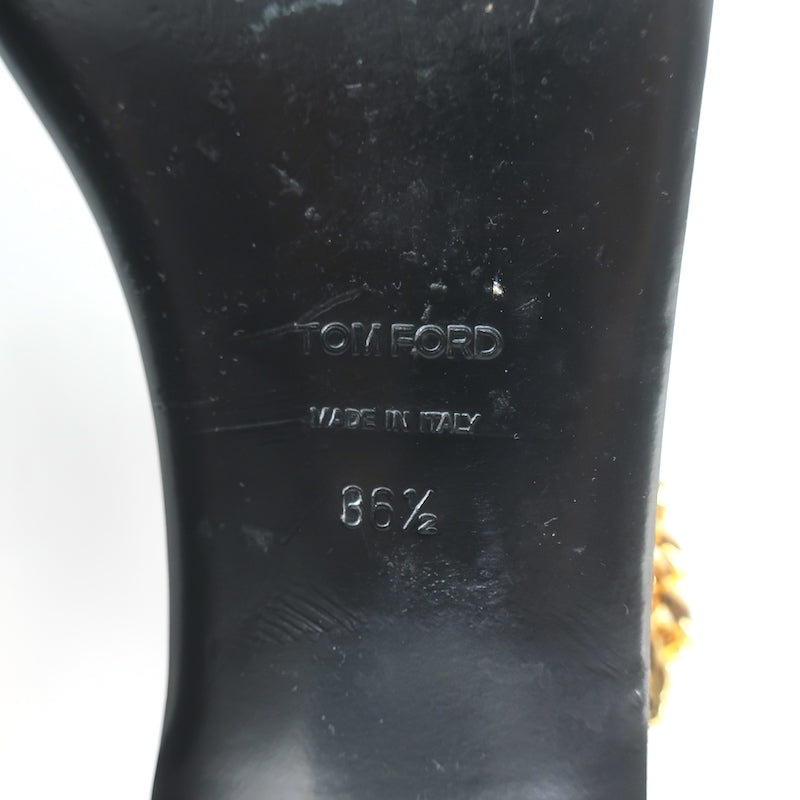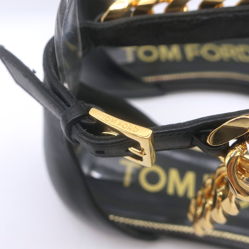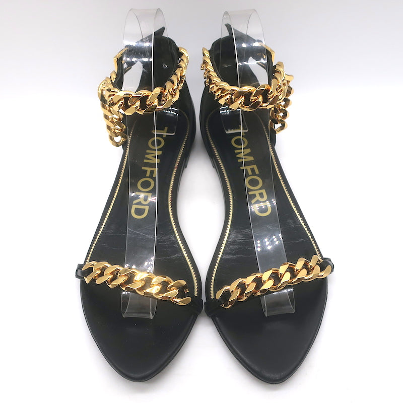 Tom Ford Biker Chain Ankle Strap Flat Sandals Black Leather Size 36.5