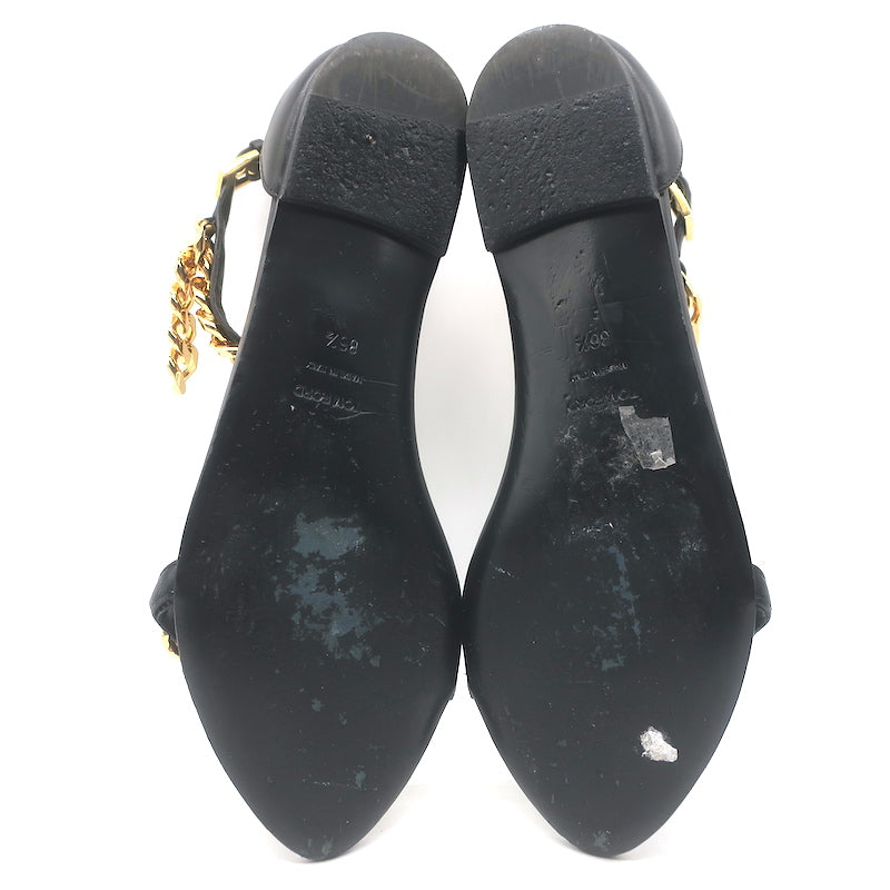 Tom Ford Biker Chain Ankle Strap Flat Sandals Black Leather Size 36.5 Measurements