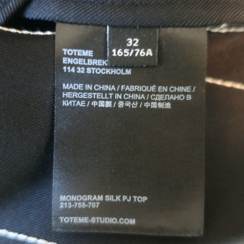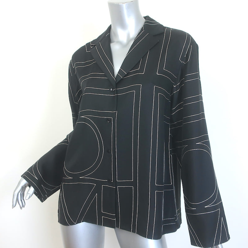 Toteme Monogram Silk PJ Shirt Black Size 32 Long Sleeve Blouse NEW