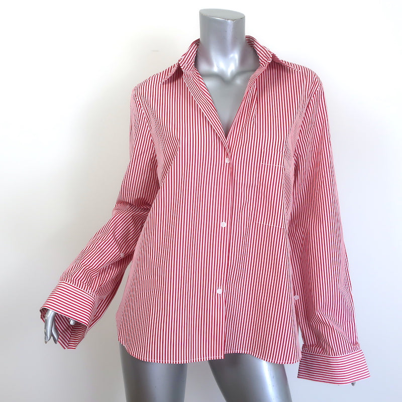 TWP Next Morning Shirt Red/White Striped Cotton Size Extra Small/Small