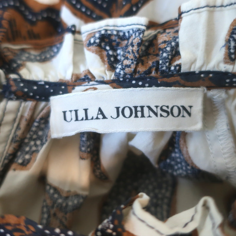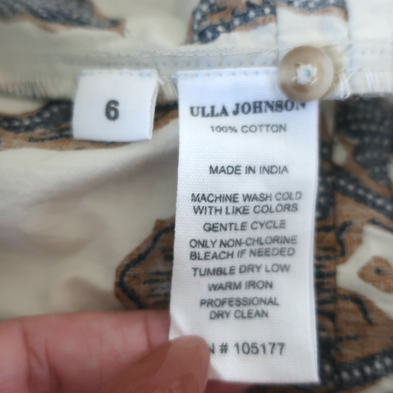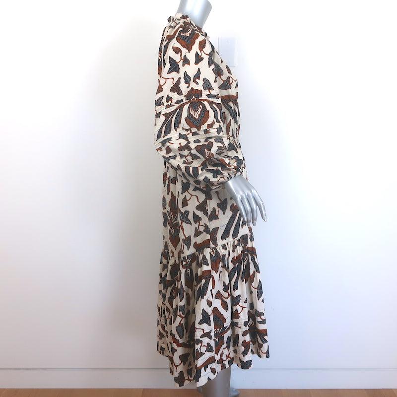 Ulla Johnson Ambre Balloon Sleeve Midi Dress Cream/Brown Printed Poplin Size 6