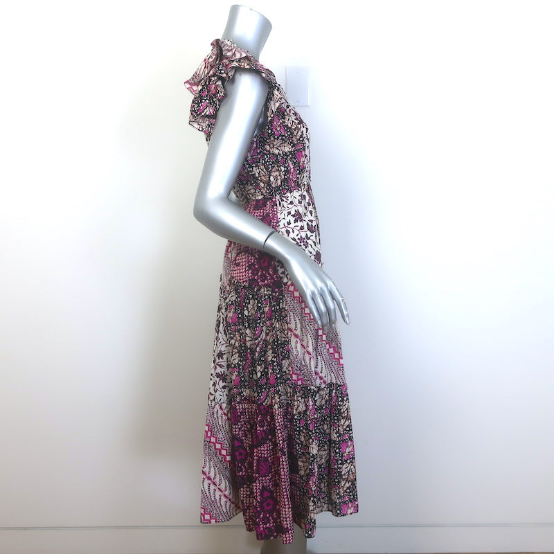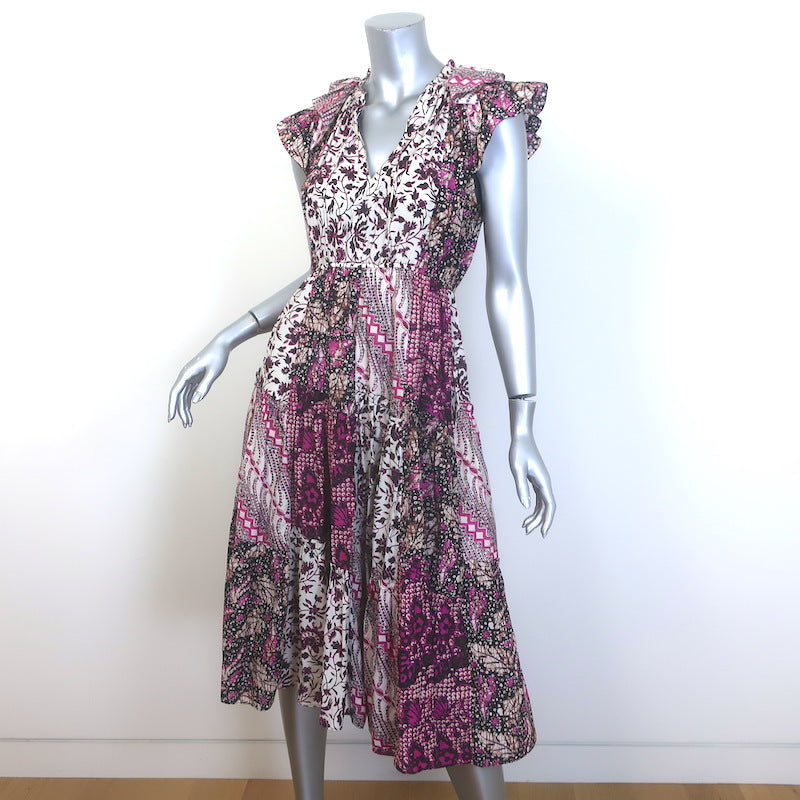 Ulla Johnson Asis Midi Dress Fuchsia/Cream Patchwork Print Cotton-Silk Size 4