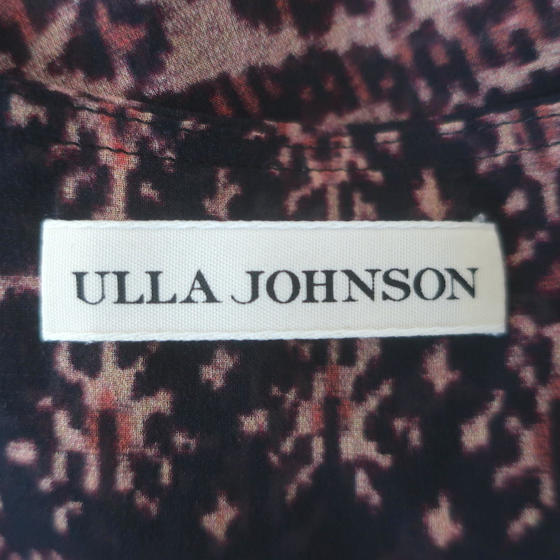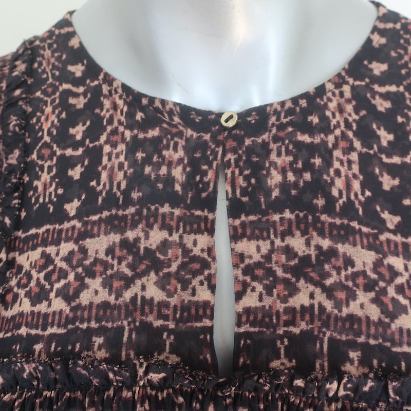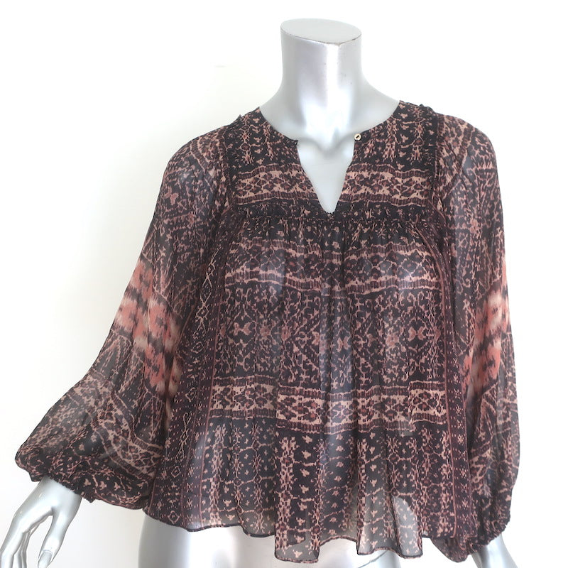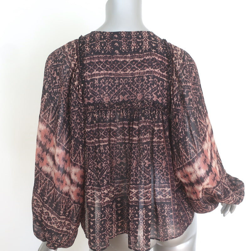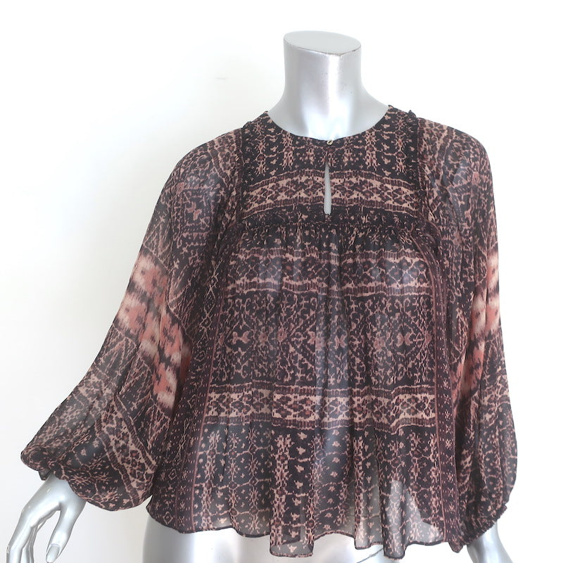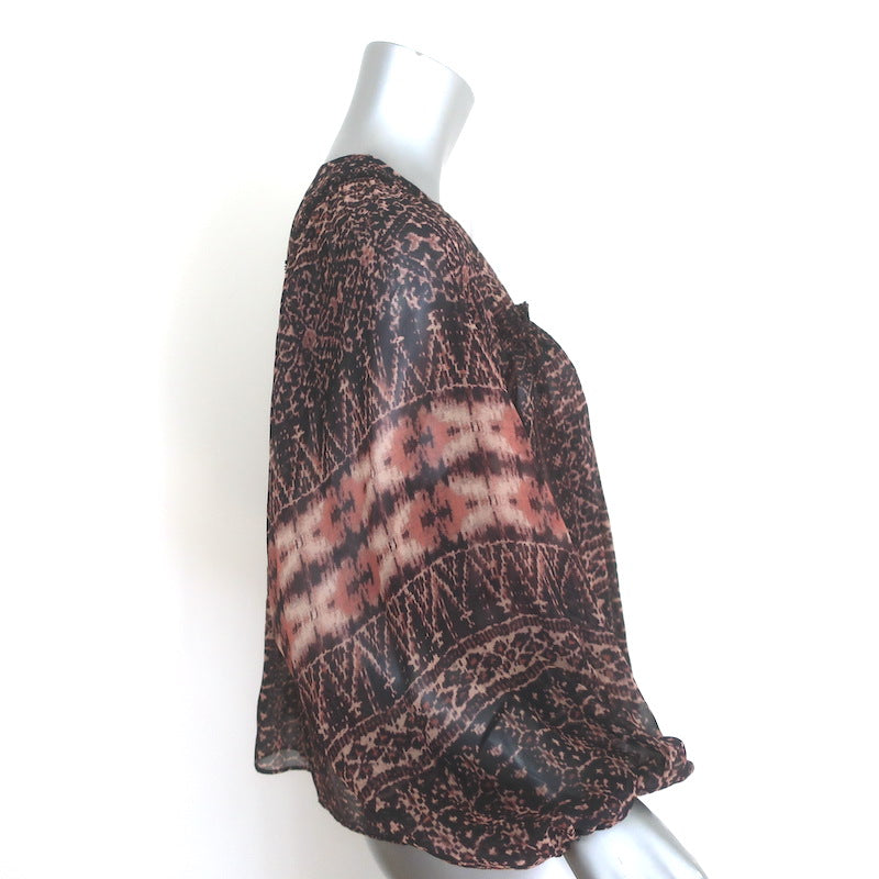 Ulla Johnson Belen Blouson-Sleeve Top Black/Brown Printed Silk Chiffon Size 0
