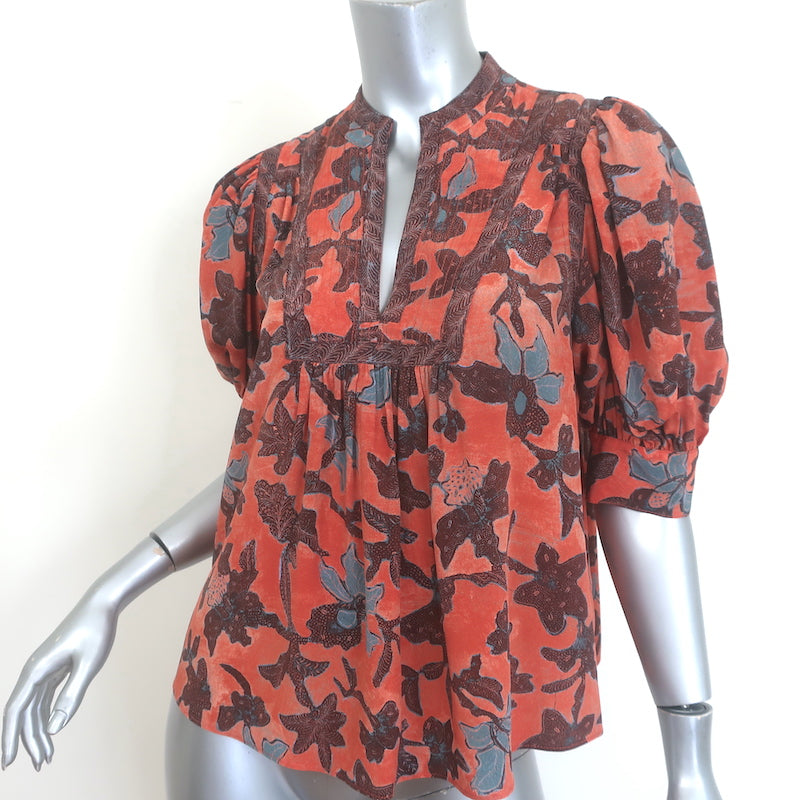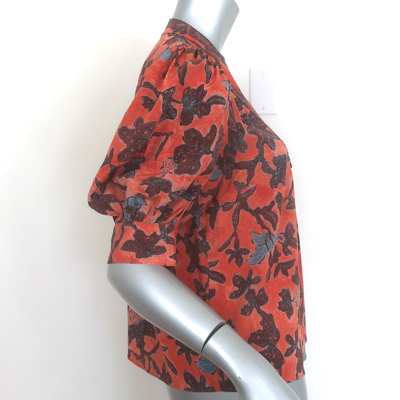 Ulla Johnson Desdra Short Sleeve Top Amaryllis Printed Silk Size 4