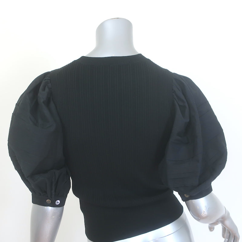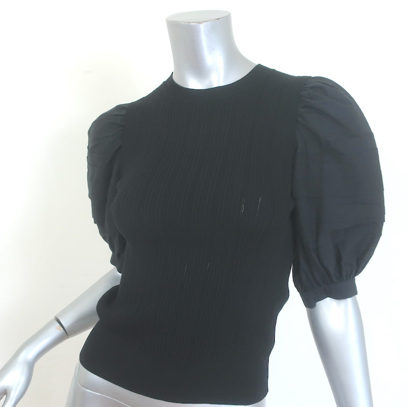 Ulla Johnson Rosalie Puff Sleeve Mixed Media Top Black Stretch Knit Size Petite Measurements