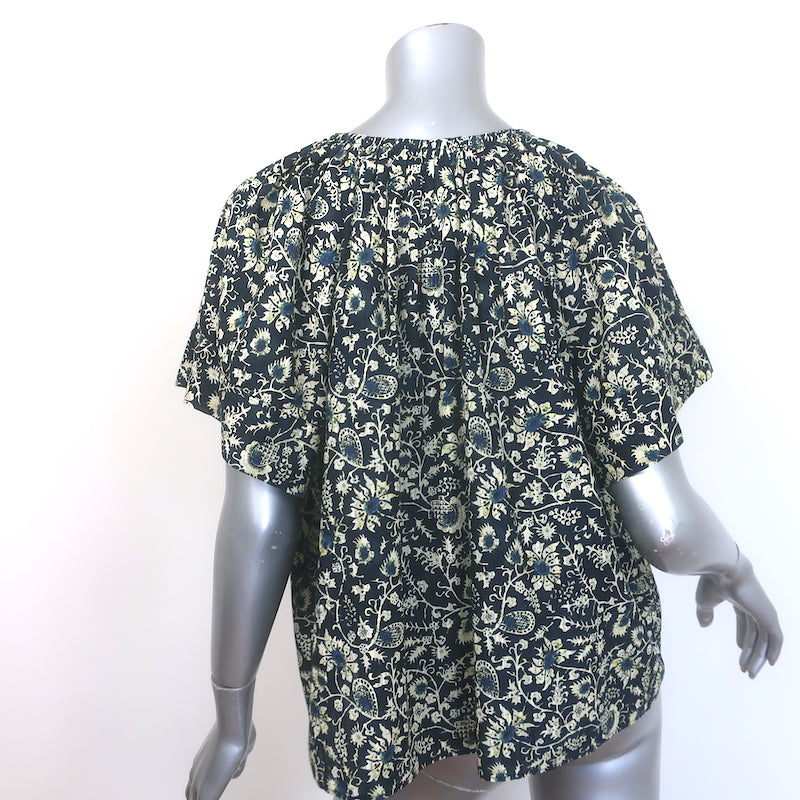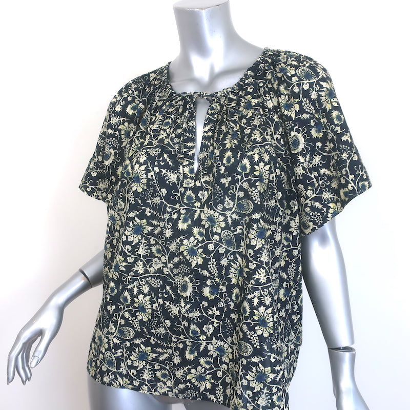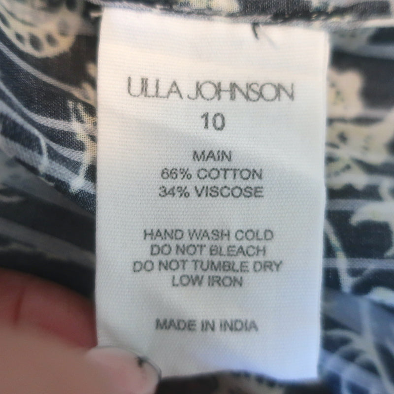 Ulla Johnson Sena Tie-Neck Top Navy Floral Print Size 10 Short Sleeve Blouse