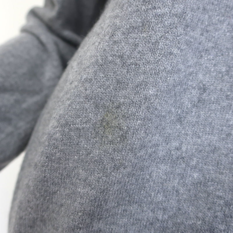 Gently worn. Good condition. No major flaws, small snag on front of knit side. 2 tiny spots on hood may come out...