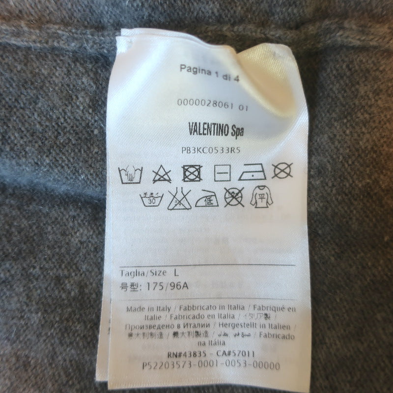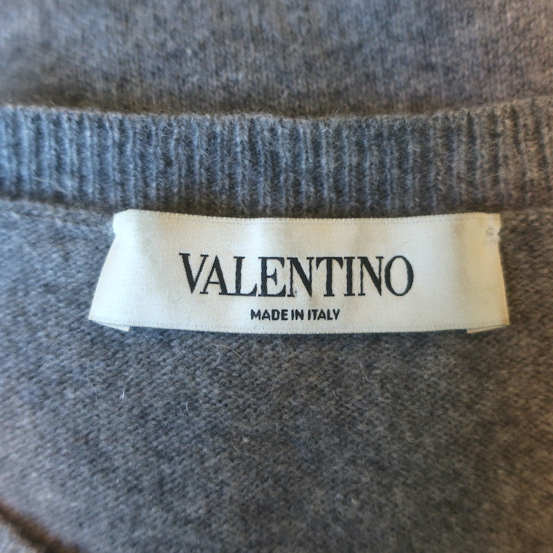 Valentino Logo Intarsia Crewneck Sweater Gray Wool-Cashmere Size Large