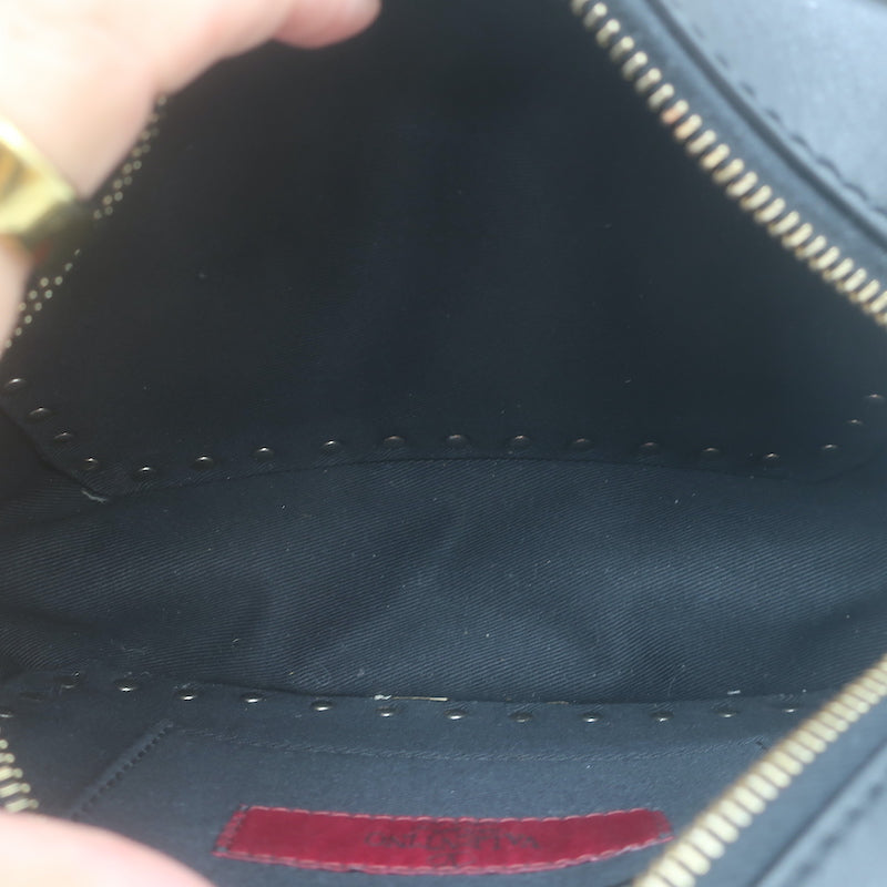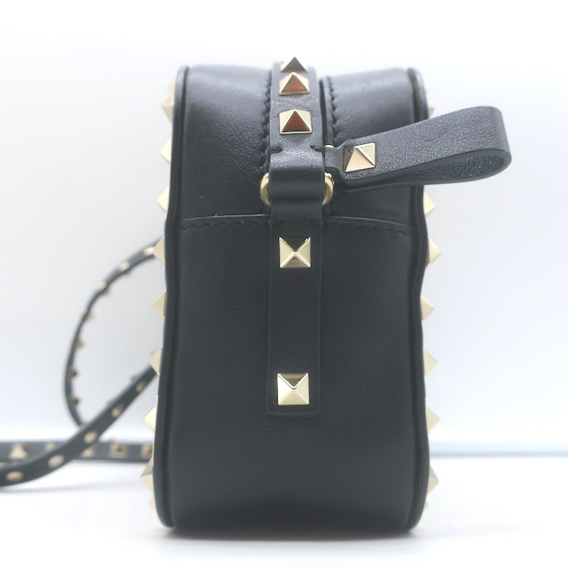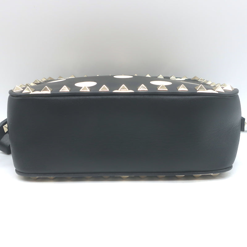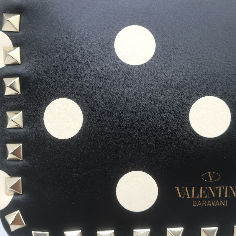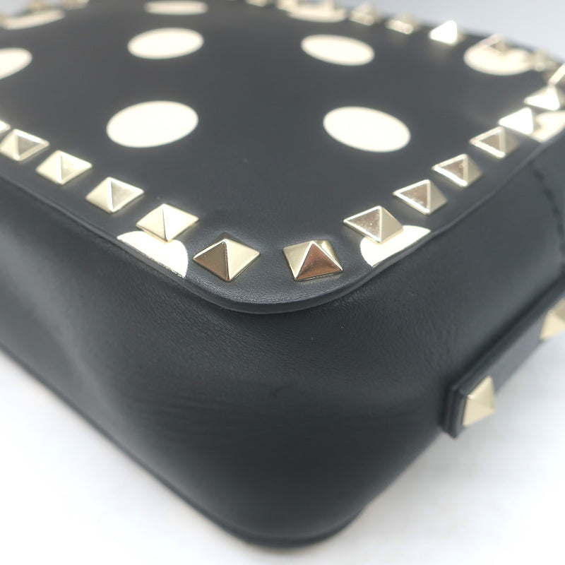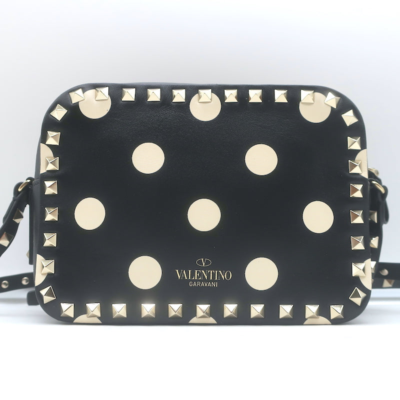 Valentino Polka Dot Rockstud Camera Bag Black & Cream Leather Small Crossbody