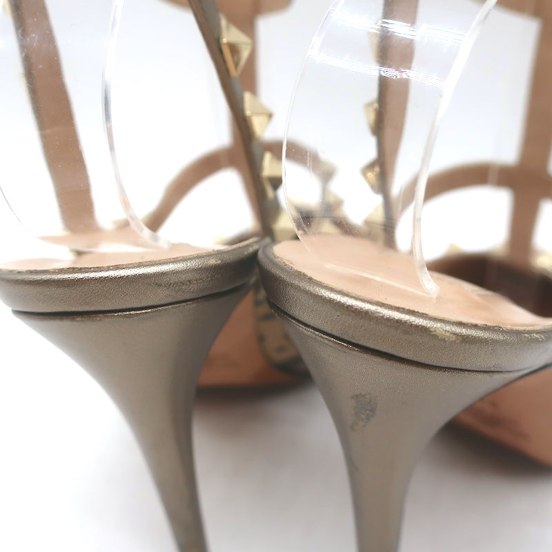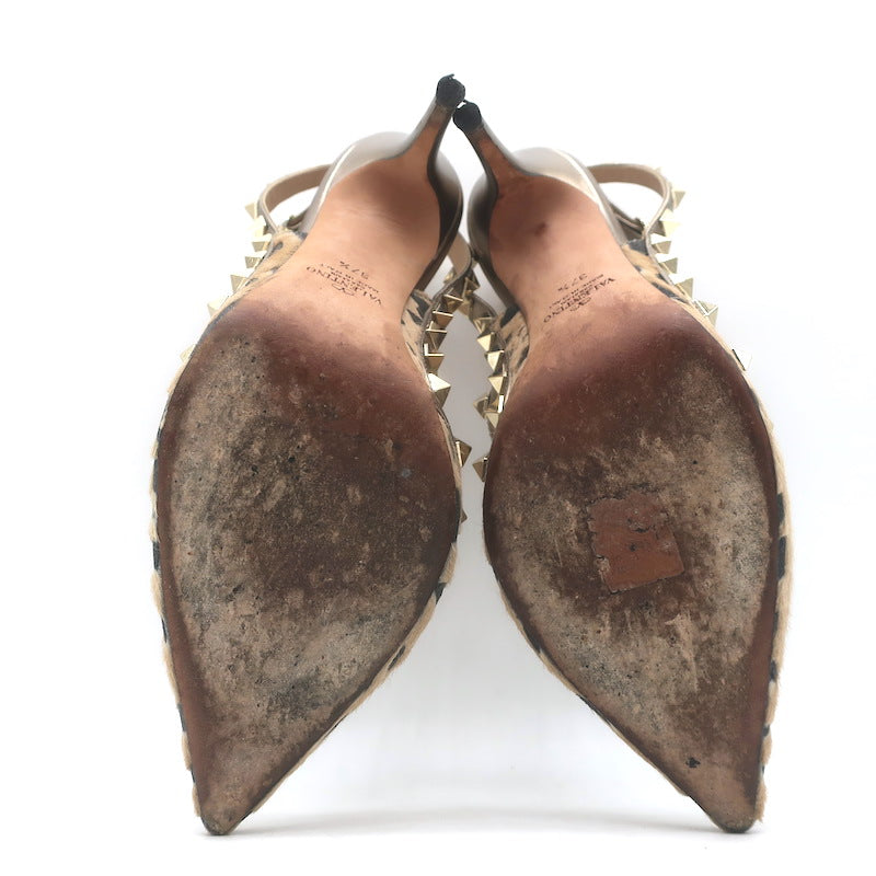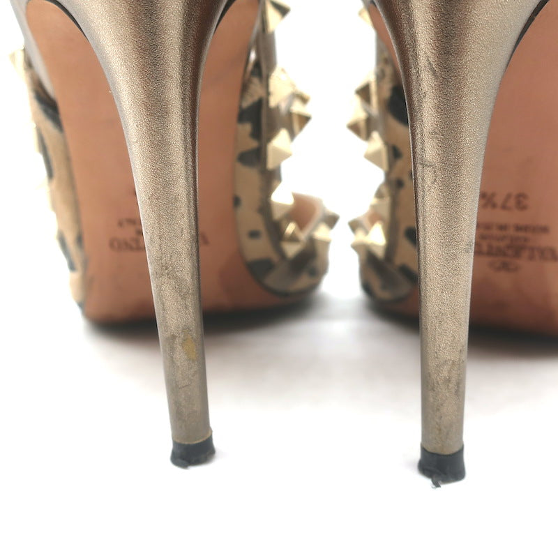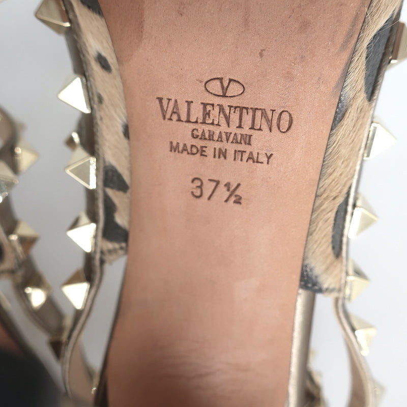 Valentino Rockstud Cheetah Print Calf Hair Pumps Gold Metallic Leather Size 37.5