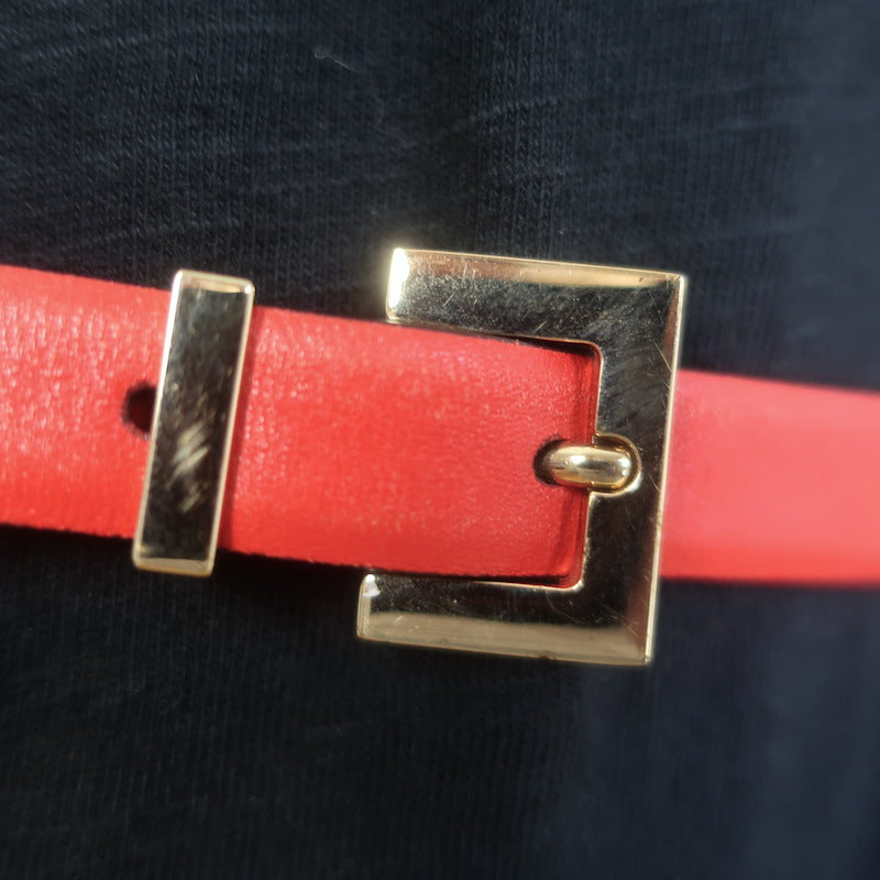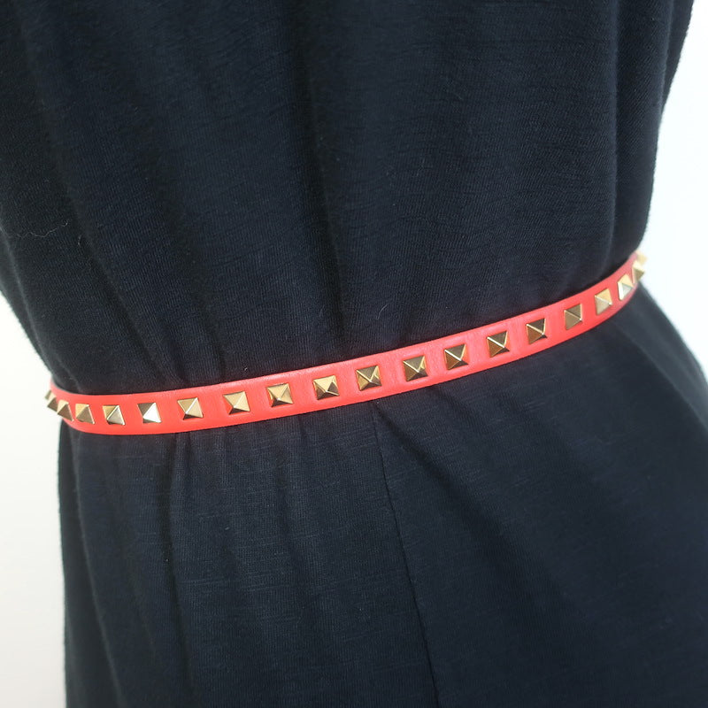 Valentino Rockstud Slim Belt Red Leather Gold Hardware Size Extra Small