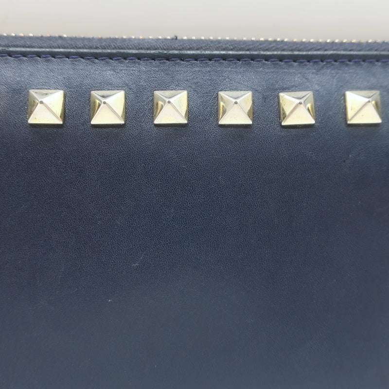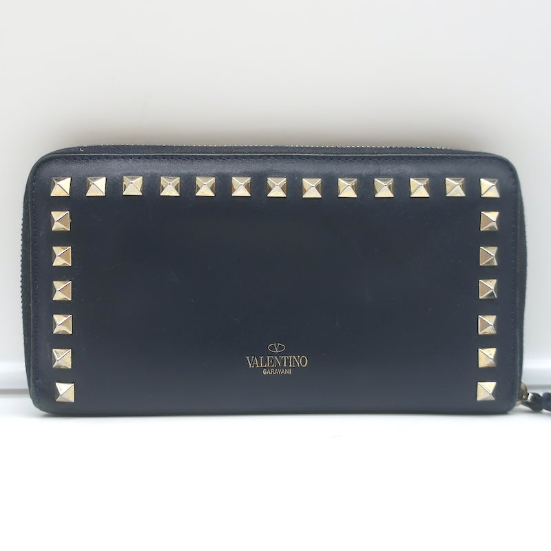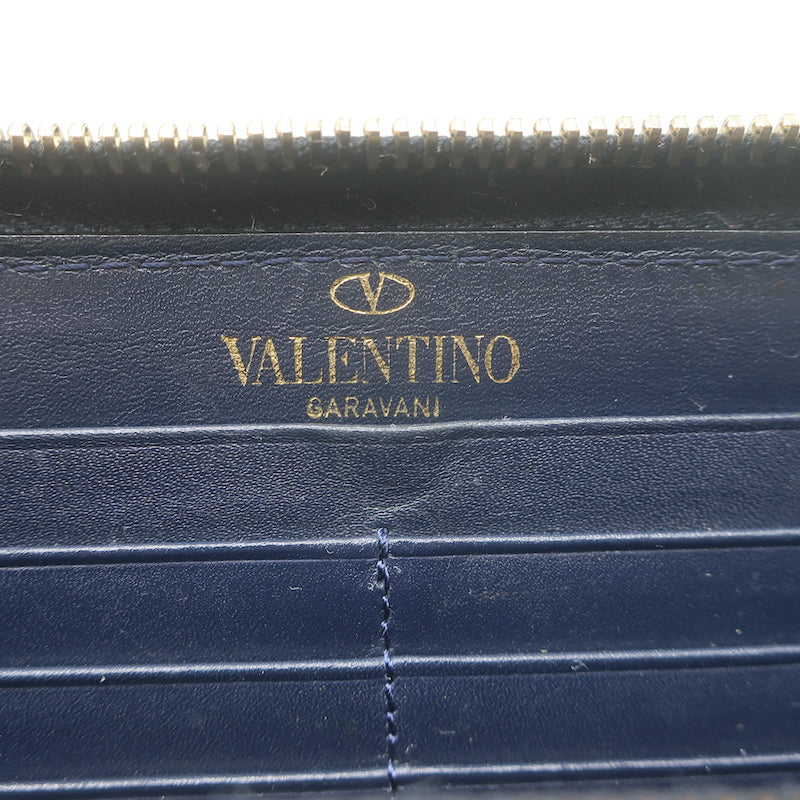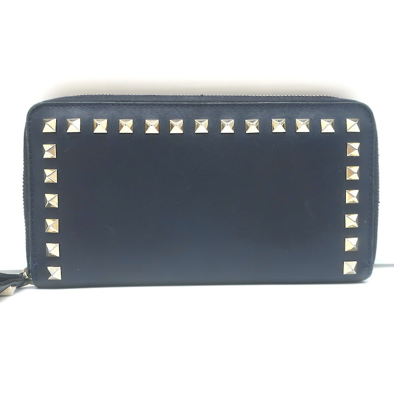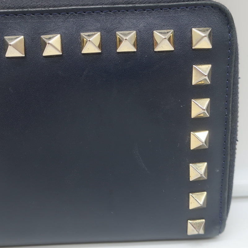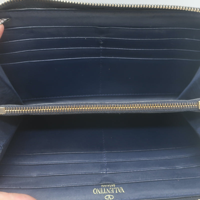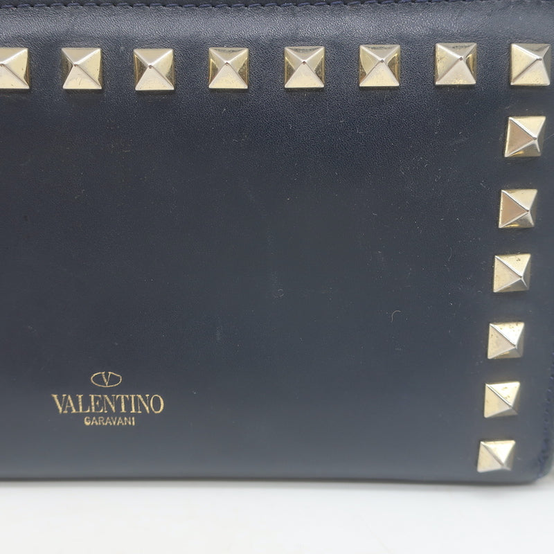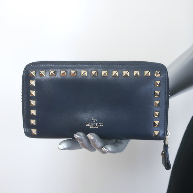 Valentino Rockstud Zip-Around Wallet Dark Navy Leather