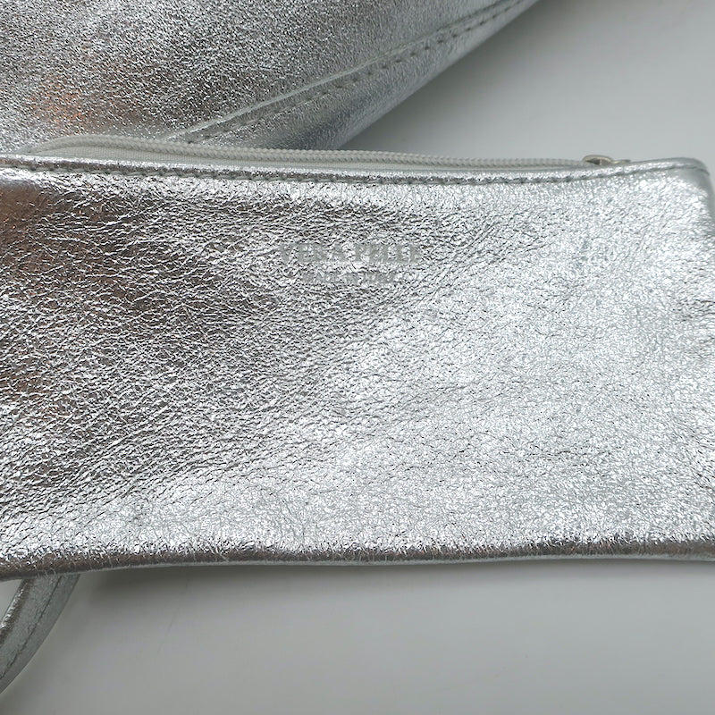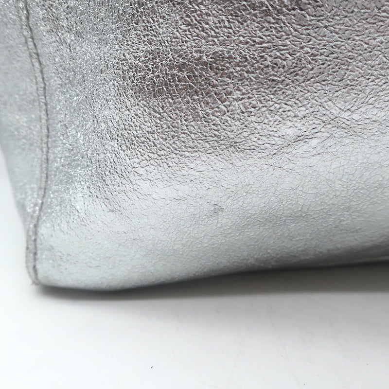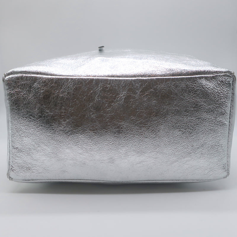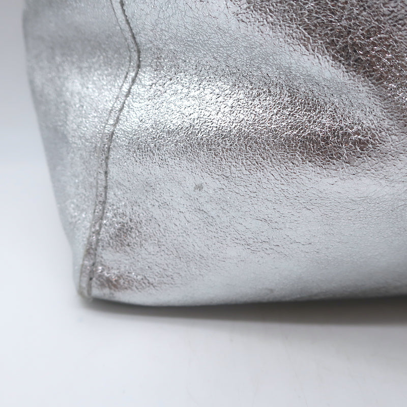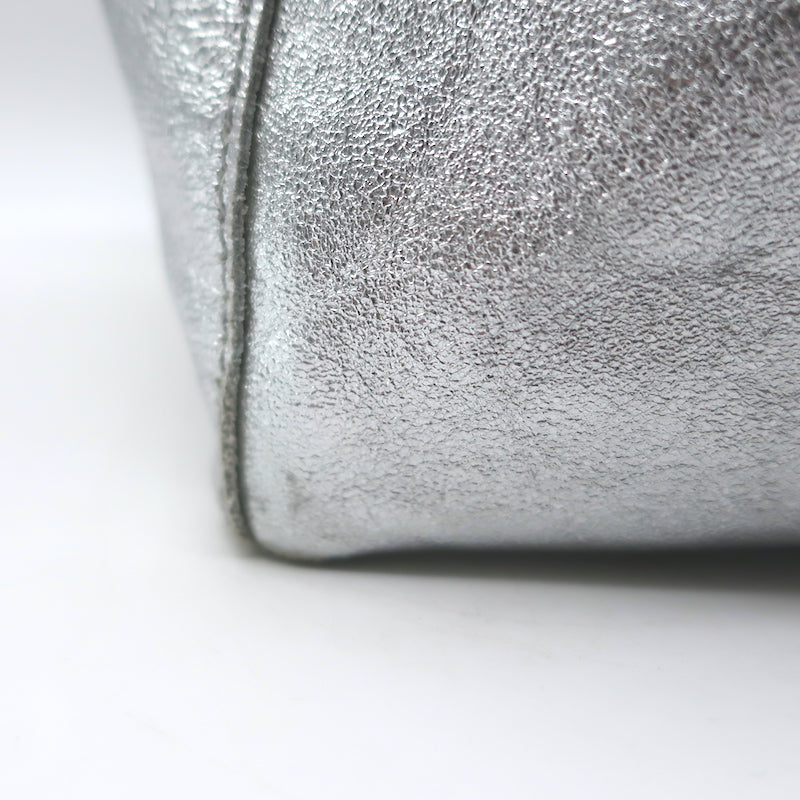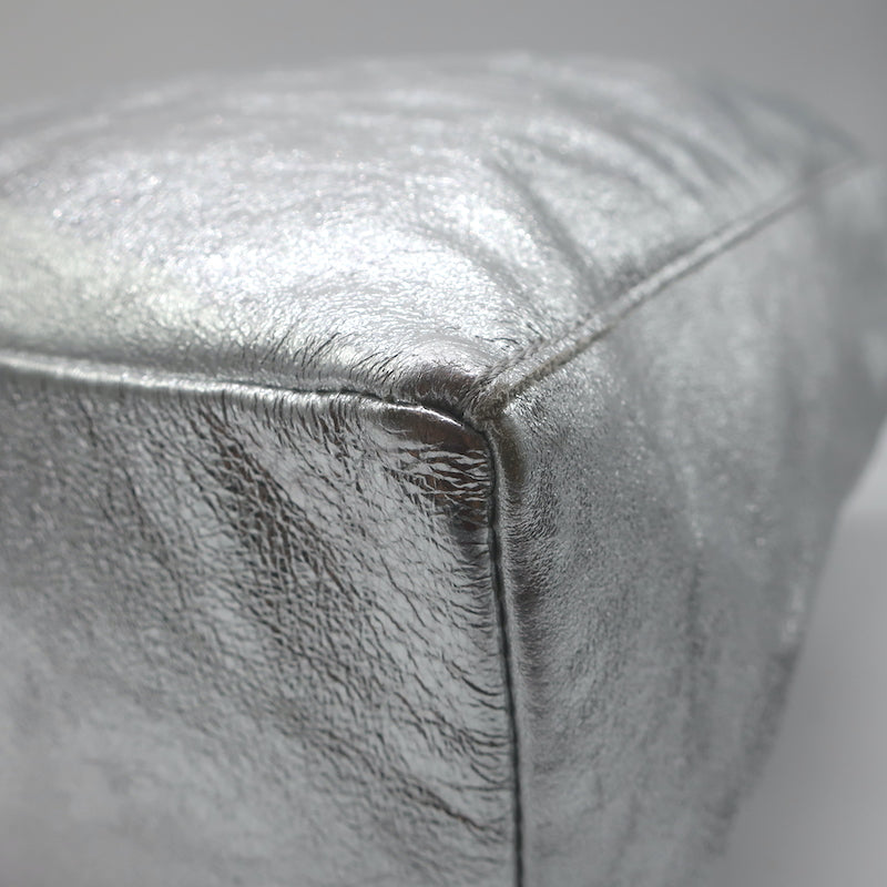 Vera Pelle Tie-Top Metallic Leather Tote Silver Large Shoulder Bag