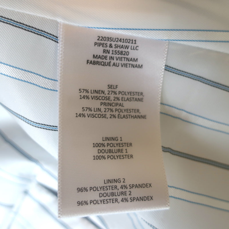 57% linen, 27% poly, 14% viscose, 2% elastane
