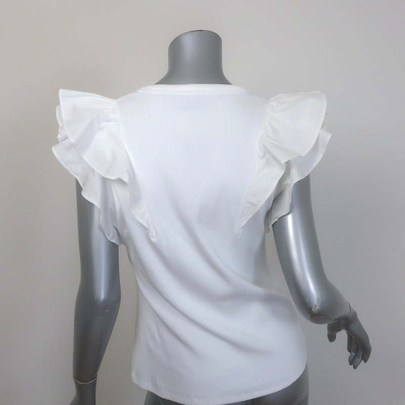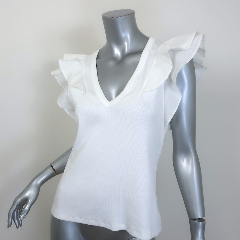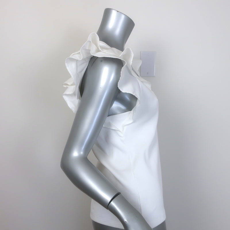 Veronica Beard Cathie Ruffle Top White Ribbed Stretch Cotton Size Medium NEW