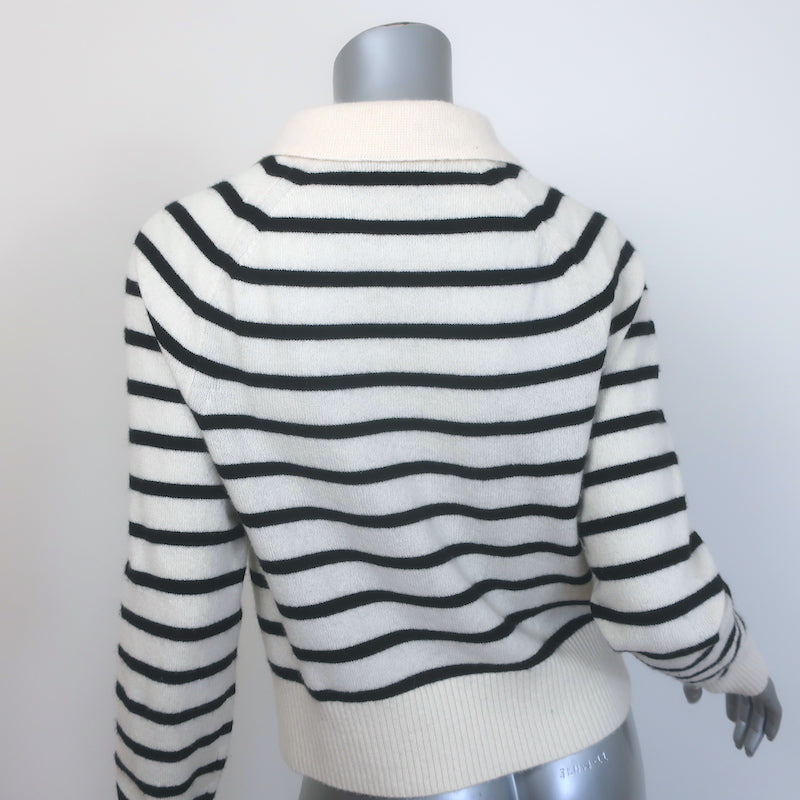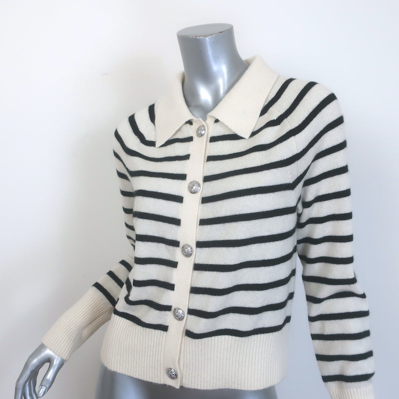 Veronica Beard Cheshire Striped Cashmere Cardigan Cream/Black Size Medium