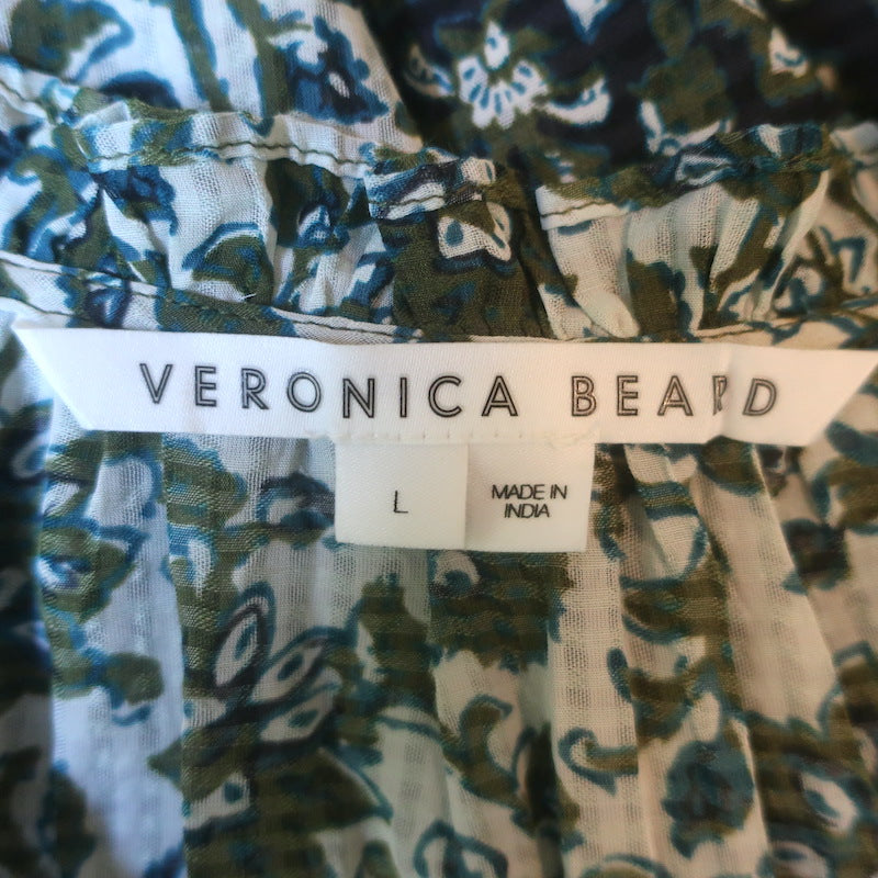 Veronica Beard Danica Mini Dress Green/White Printed Cotton-Blend Size Large
