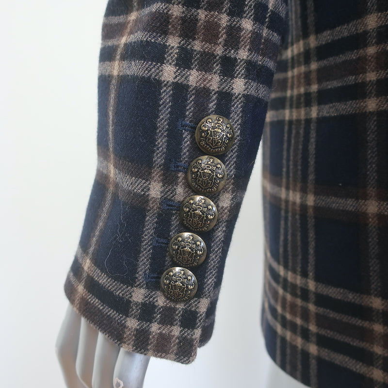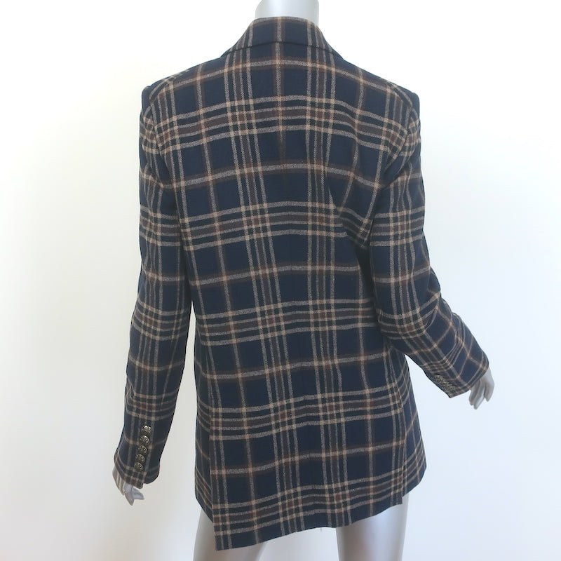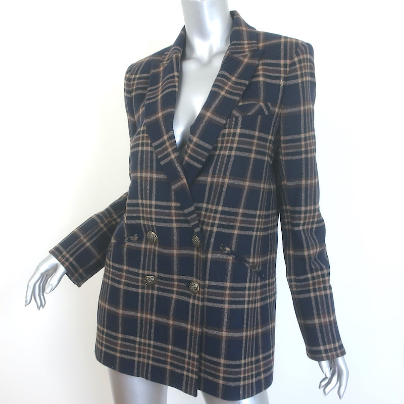 Veronica Beard Oria Plaid Dickey Jacket Navy/Tan Size 6 Double Breasted Blazer