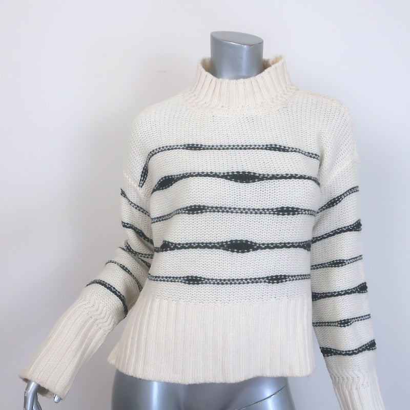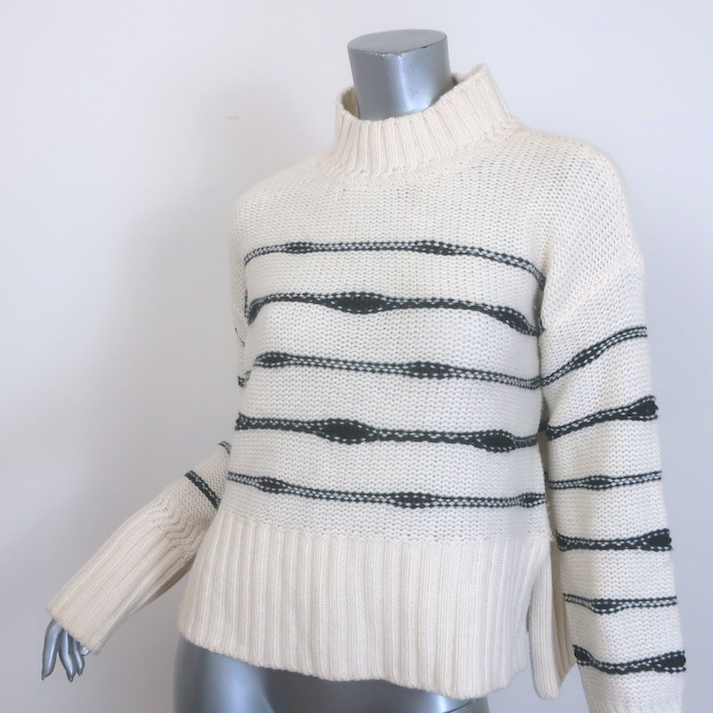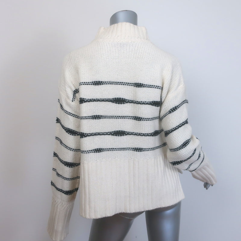 Veronica Beard Viori Striped Mock Neck Sweater Ivory/Black Size Medium
