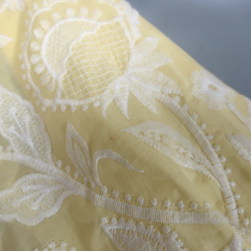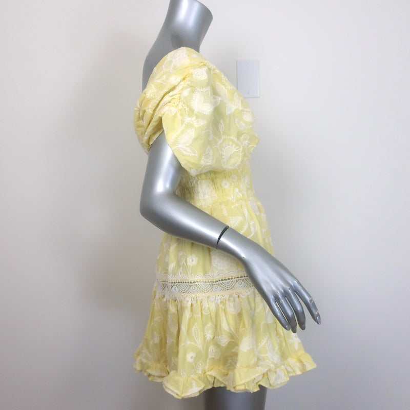 WAIMARI Paloma Smocked Embroidered Mini Dress Light Yellow Cotton Size Small