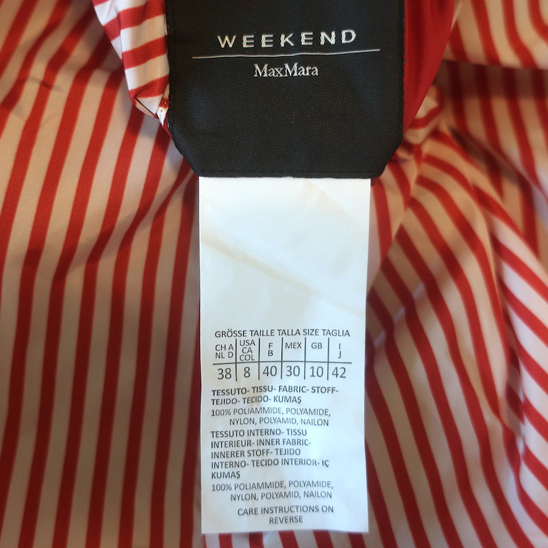 Weekend Max Mara Reversible Hooded Striped Rain Jacket Red/White Size US 8