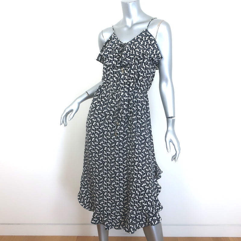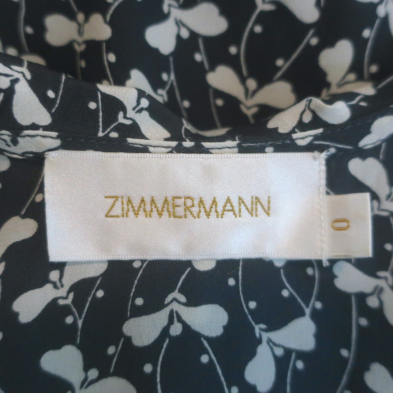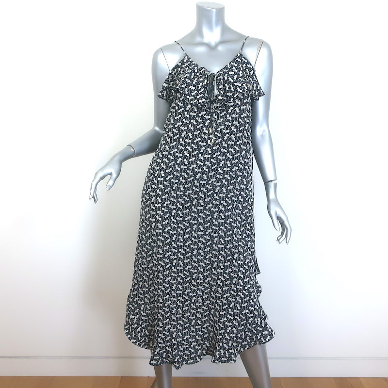 Zimmermann Flounce Neck Midi Tank Dress Black Floral Print Ruffled Silk Size 0