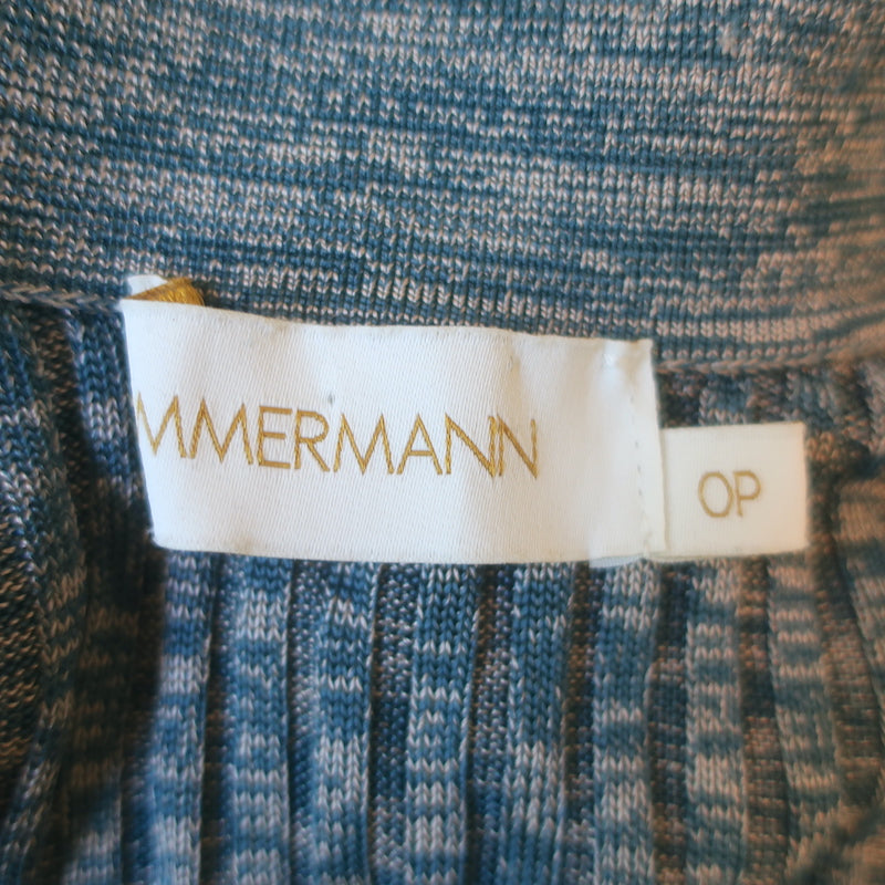 Zimmermann Illustration Mouline Polo Midi Dress Teal/Multi Ribbed Knit Size 0P