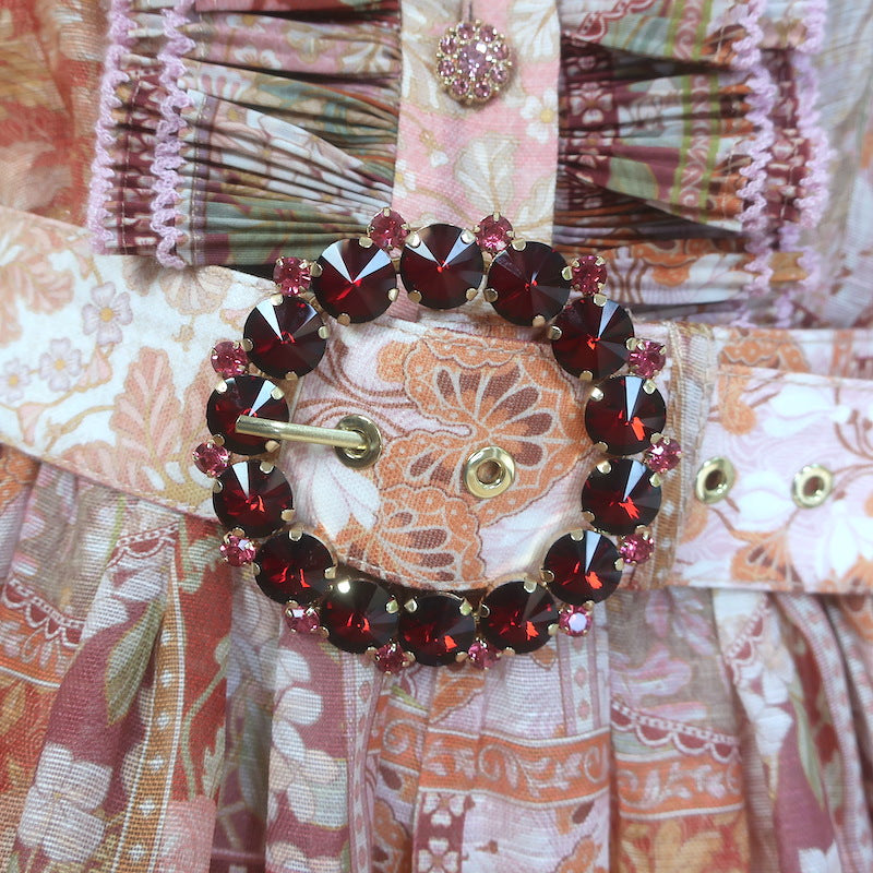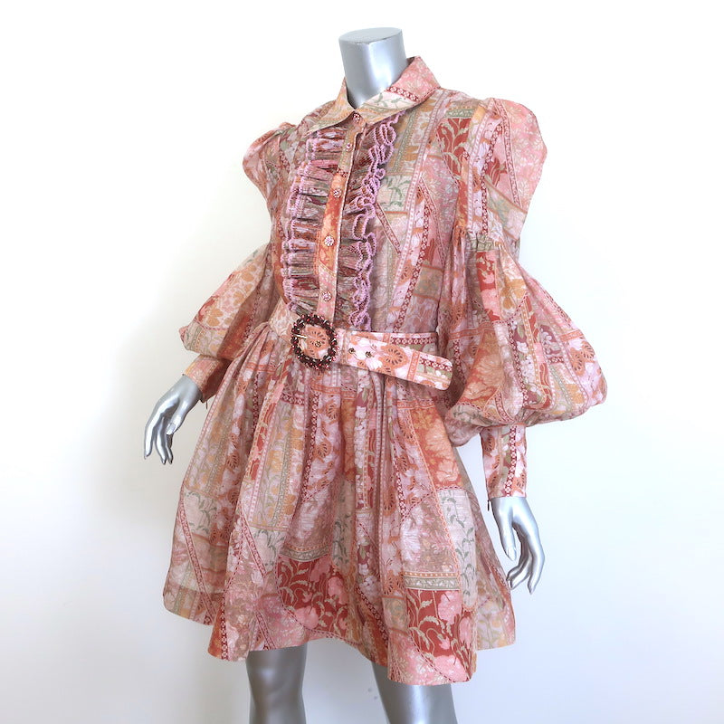 Zimmermann Kaleidoscope Tuxedo Frill Mini Dress Light Pink Floral Print Size 2