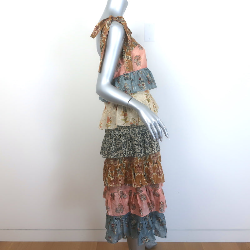 Zimmermann Tallow Tiered Midi Dress Ruffled Patchwork Floral Print Size 0P