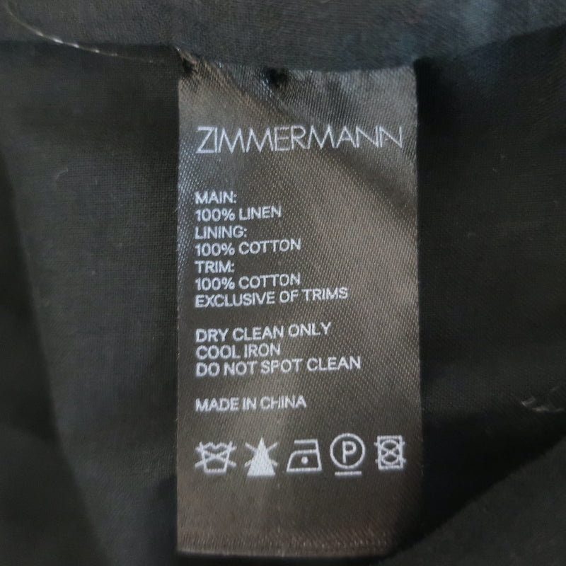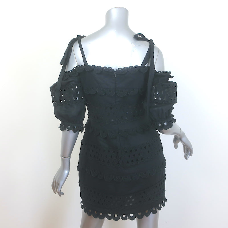 Zimmermann Verity Cold-Shoulder Embroidered Mini Dress Black Linen Size 2 NEW