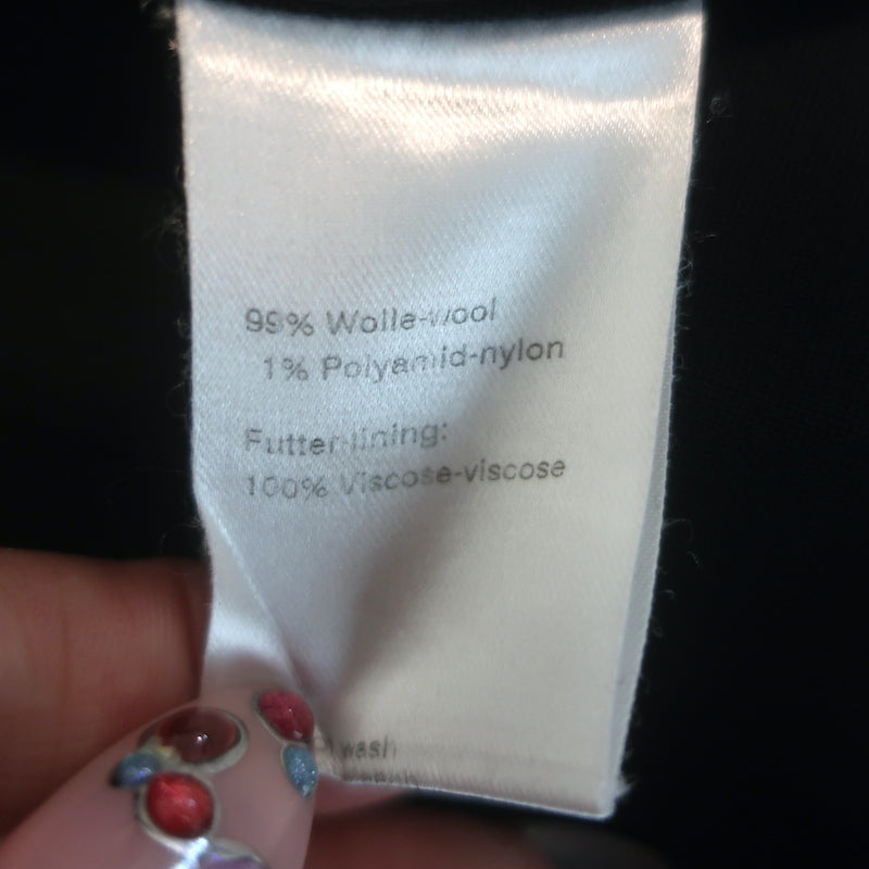 Pre-loved. Good condition. No major flaws, a couple of small smudges on right sleeve cuff may come out with cleaning. 70% wool,...