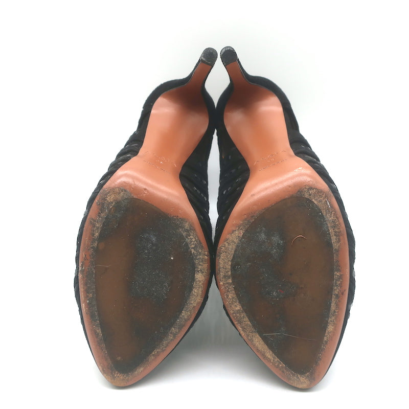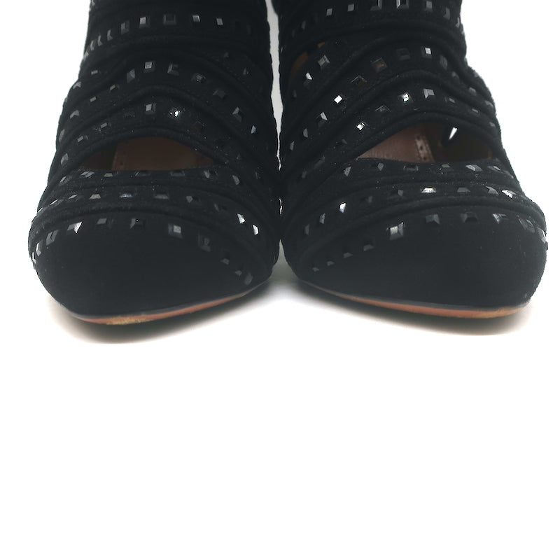 Alaia Crystal-Studded Cutout Boots Black Suede Size 39
