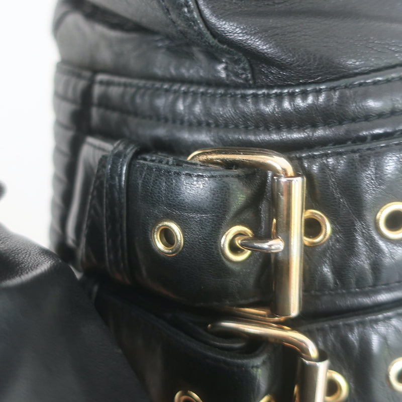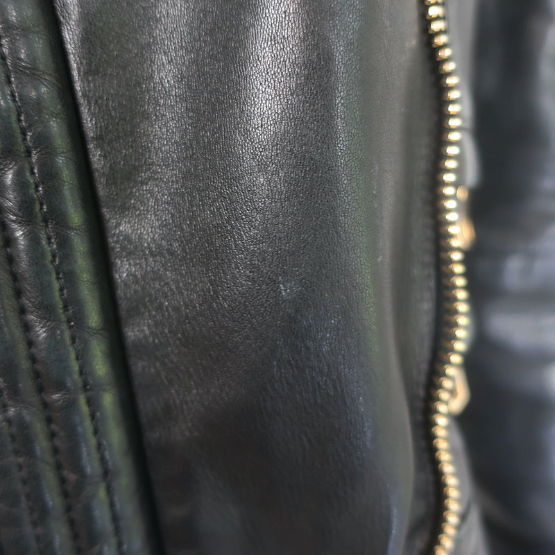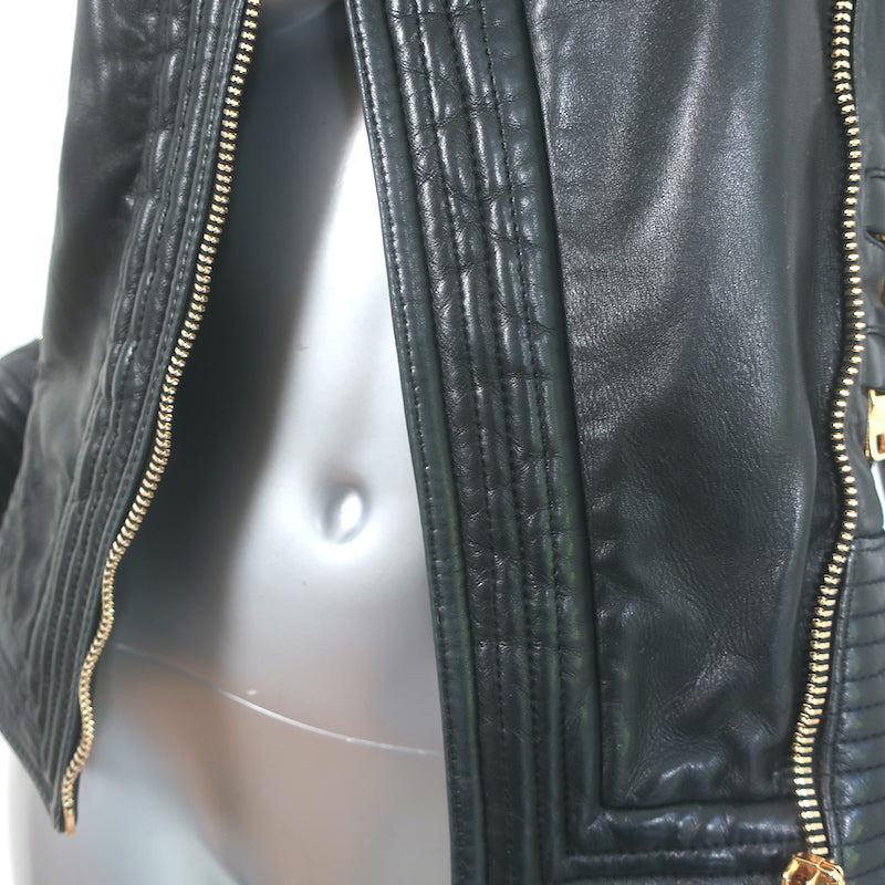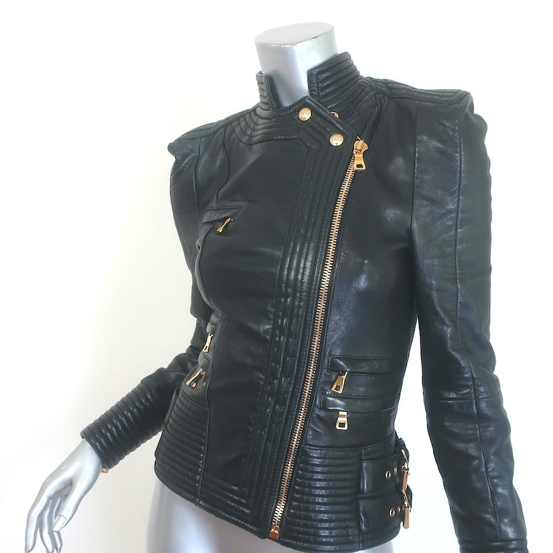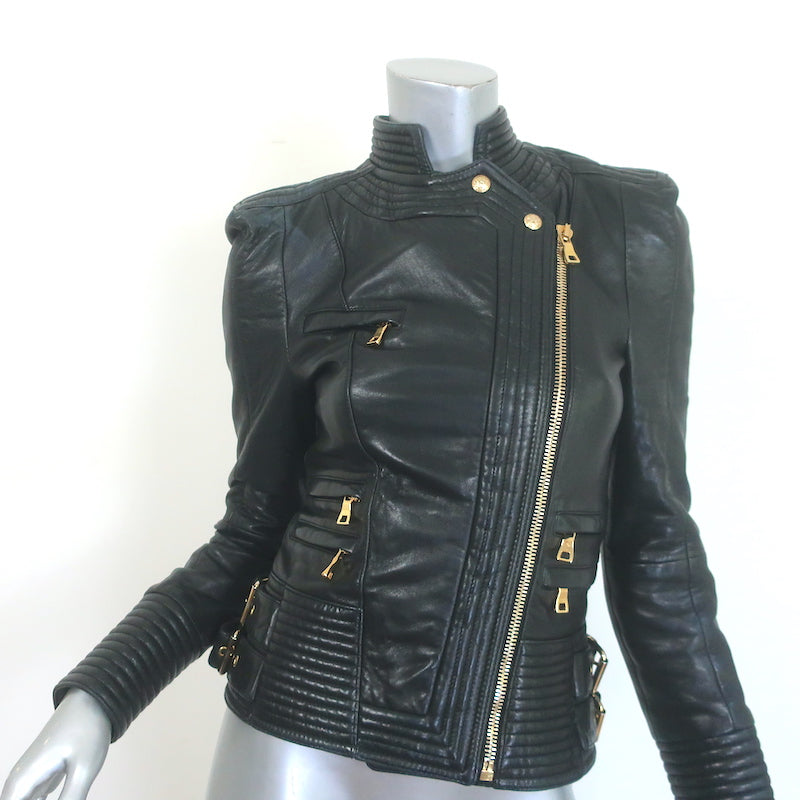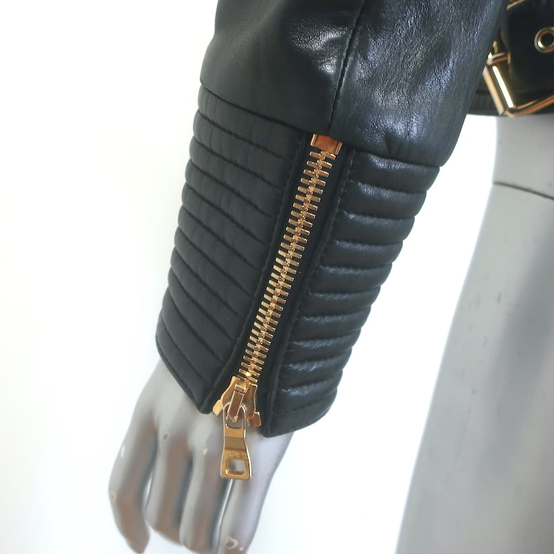 Balmain Multi-Pocket Leather Moto Jacket Black Quilted Leather Size 36