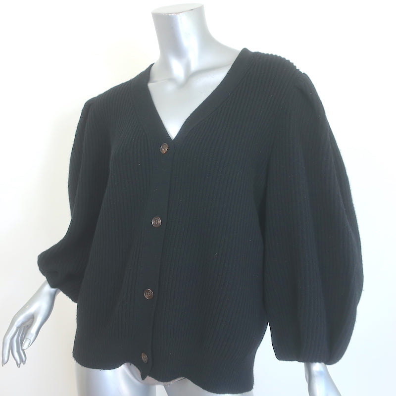 G. Label by goop Foster Puff Sleeve Cardigan Black Ribbed Wool Size Extra Large