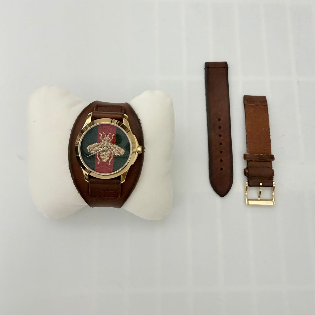 Gucci Le Marche des Merveilles Bee Watch Brown Leather Strap