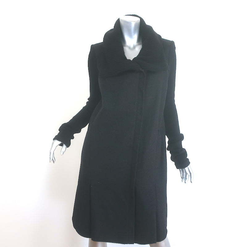 Helmut Lang Ribbed-Sleeve Combat Coat Black Felted Wool Size Small