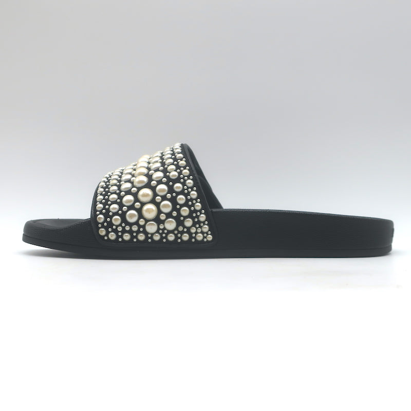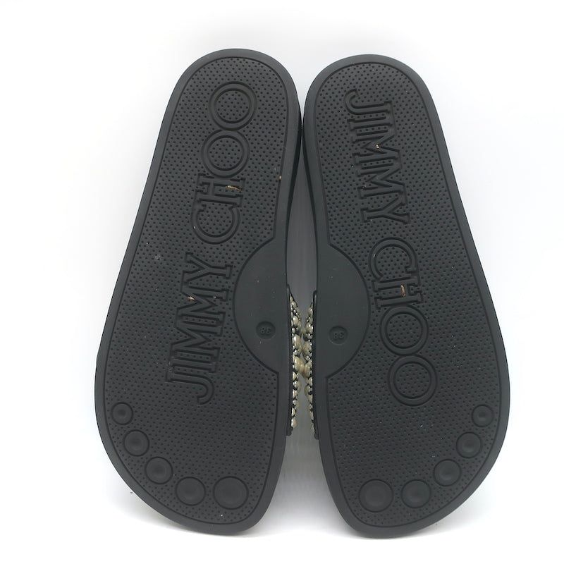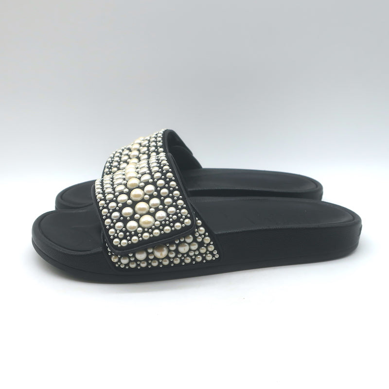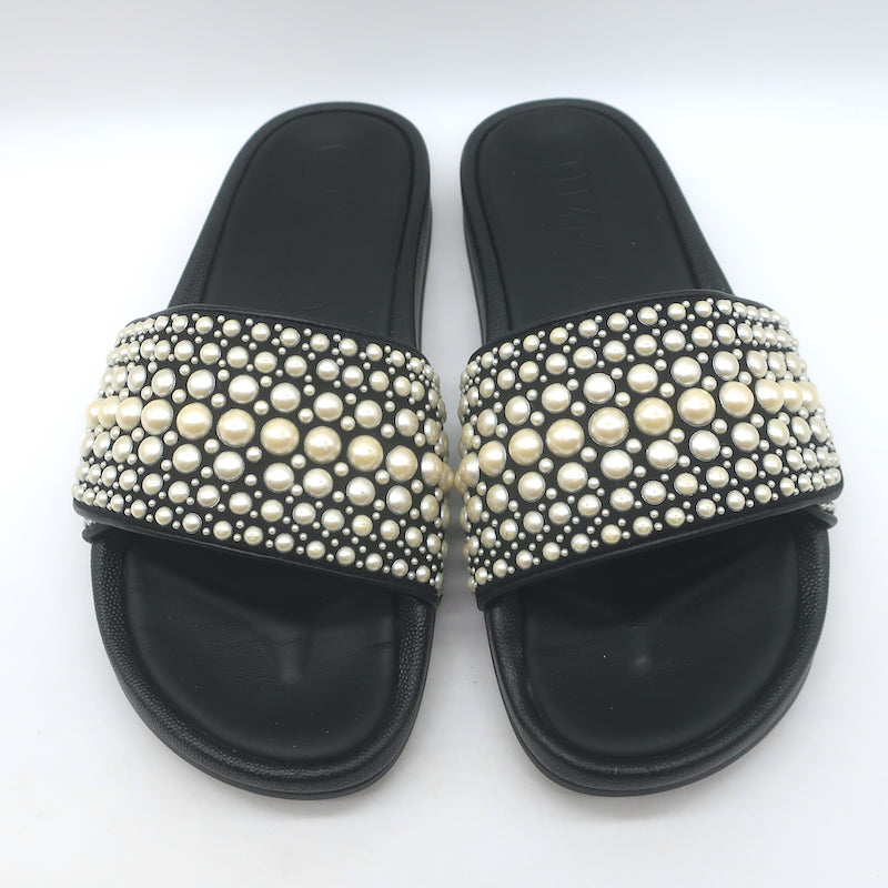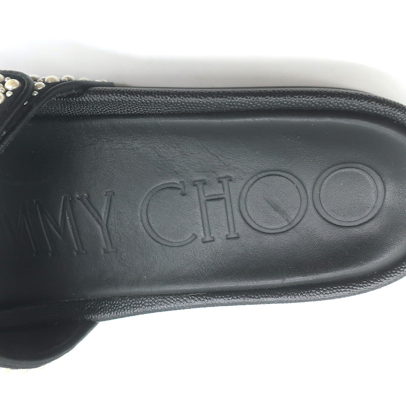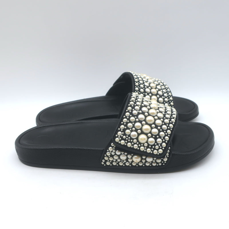 Jimmy Choo Fitz Faux Pearl-Embellished Slide Sandals Black Size 38