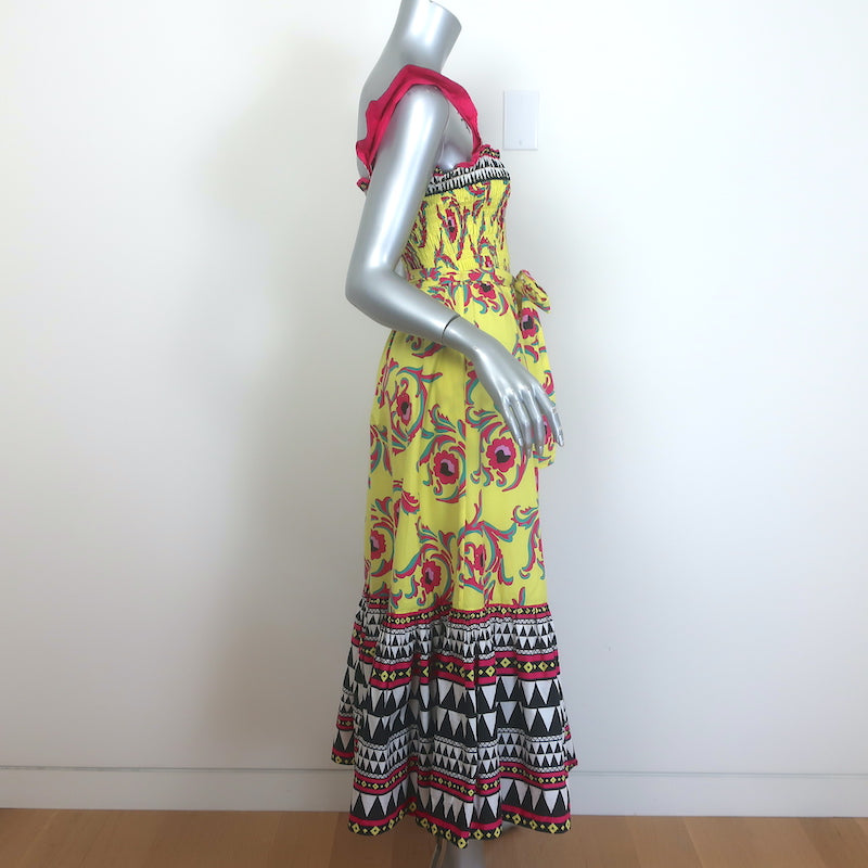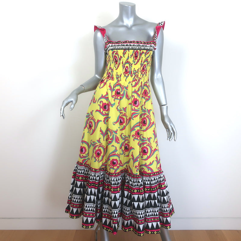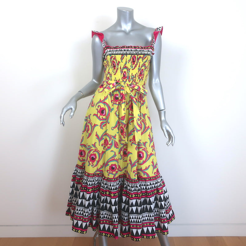 La DoubleJ Smock Midi Dress Yellow Cartwheel Giallo Print Cotton Size Small