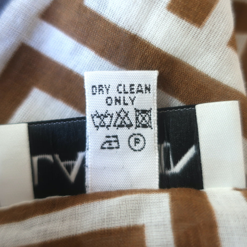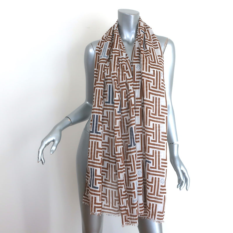 Lanvin Geometric Print Fringed Scarf White & Brown Cotton