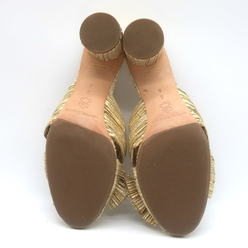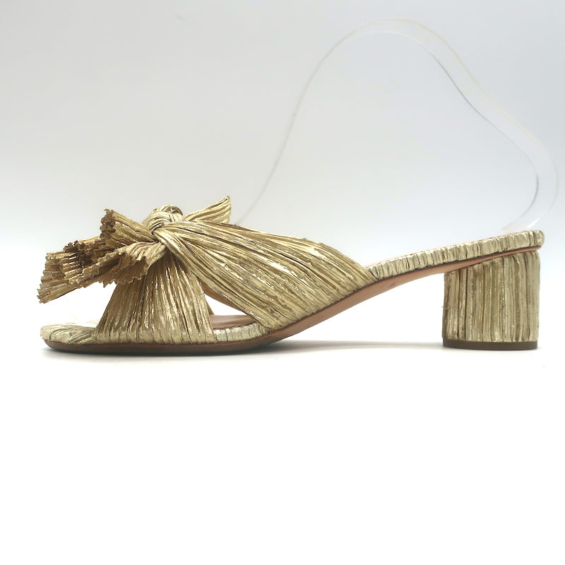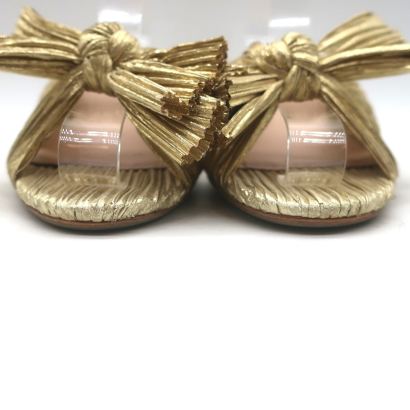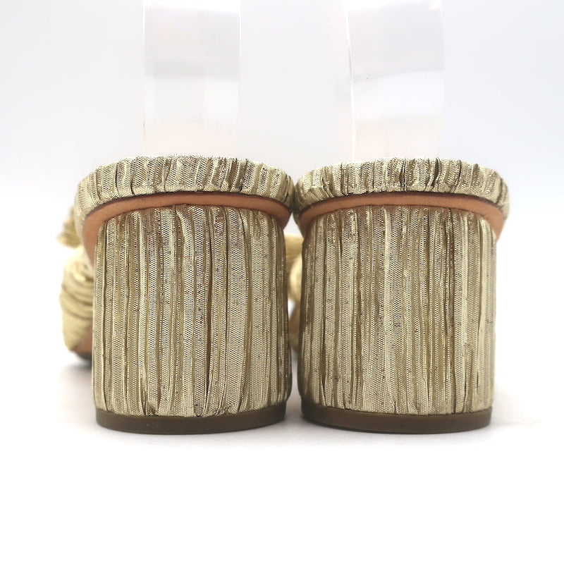 Loeffler Randall Emilia Knot Slide Sandals Gold Pleated Lame Size 8