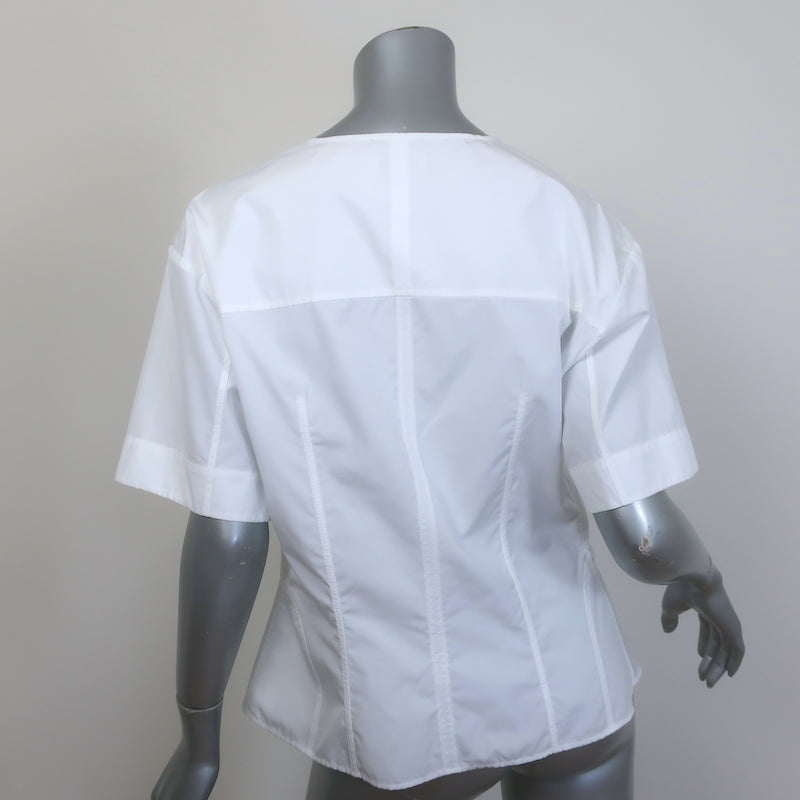 McQueen Corset Shirt White Cotton Poplin Size 46 Short Sleeve Blouse