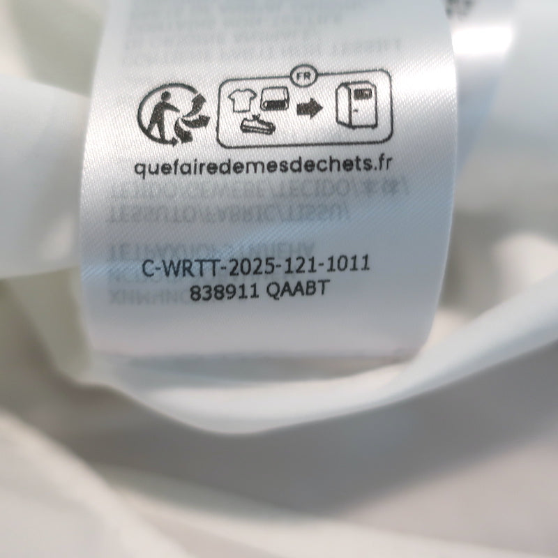 Pre-loved. Faint gray smudge on right sleeve and a small gray smudge on left side of collar may come out with cleaning....